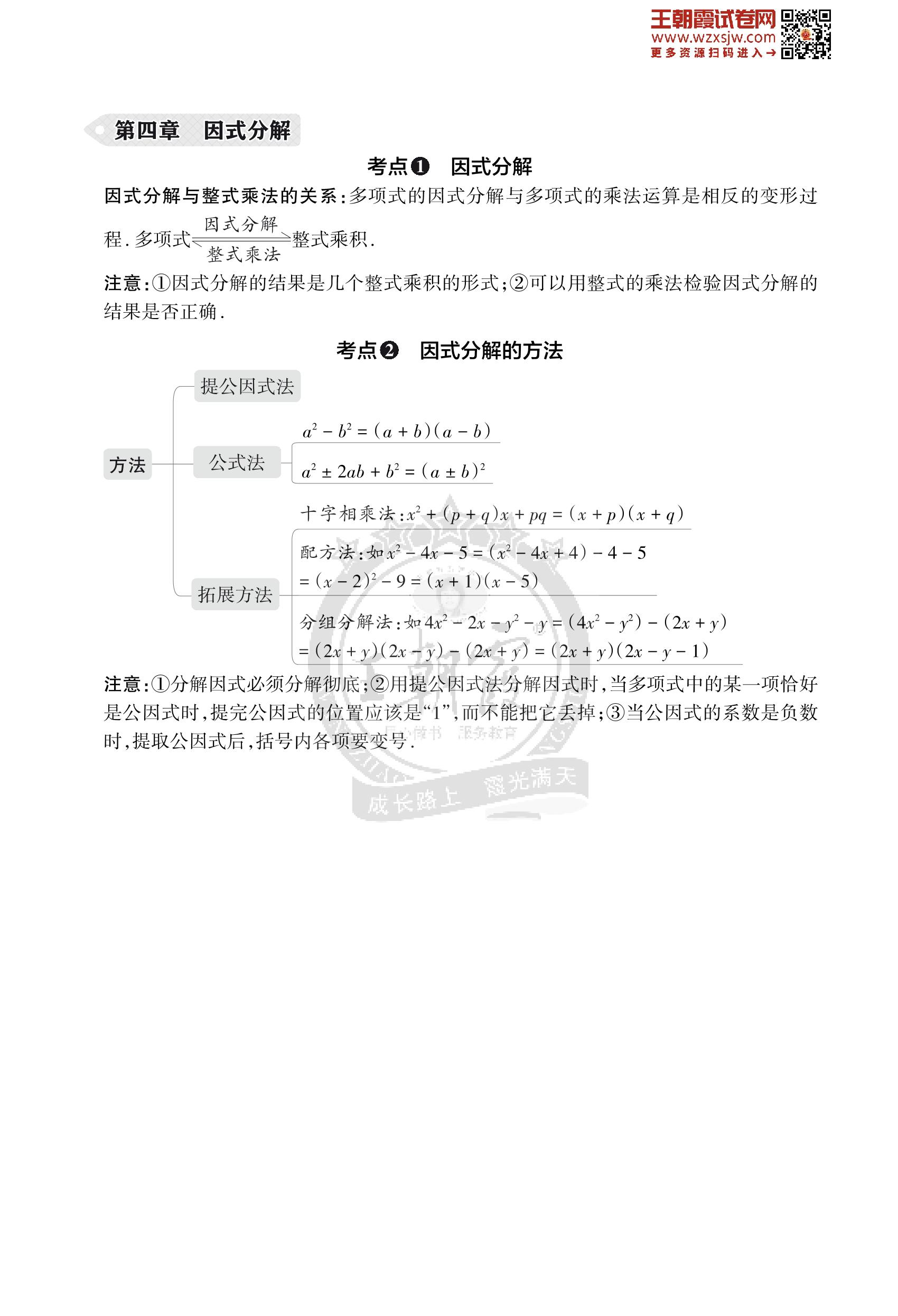 王朝霞期末知识梳理——第四章 因式分解八年级下册数学(北师版)