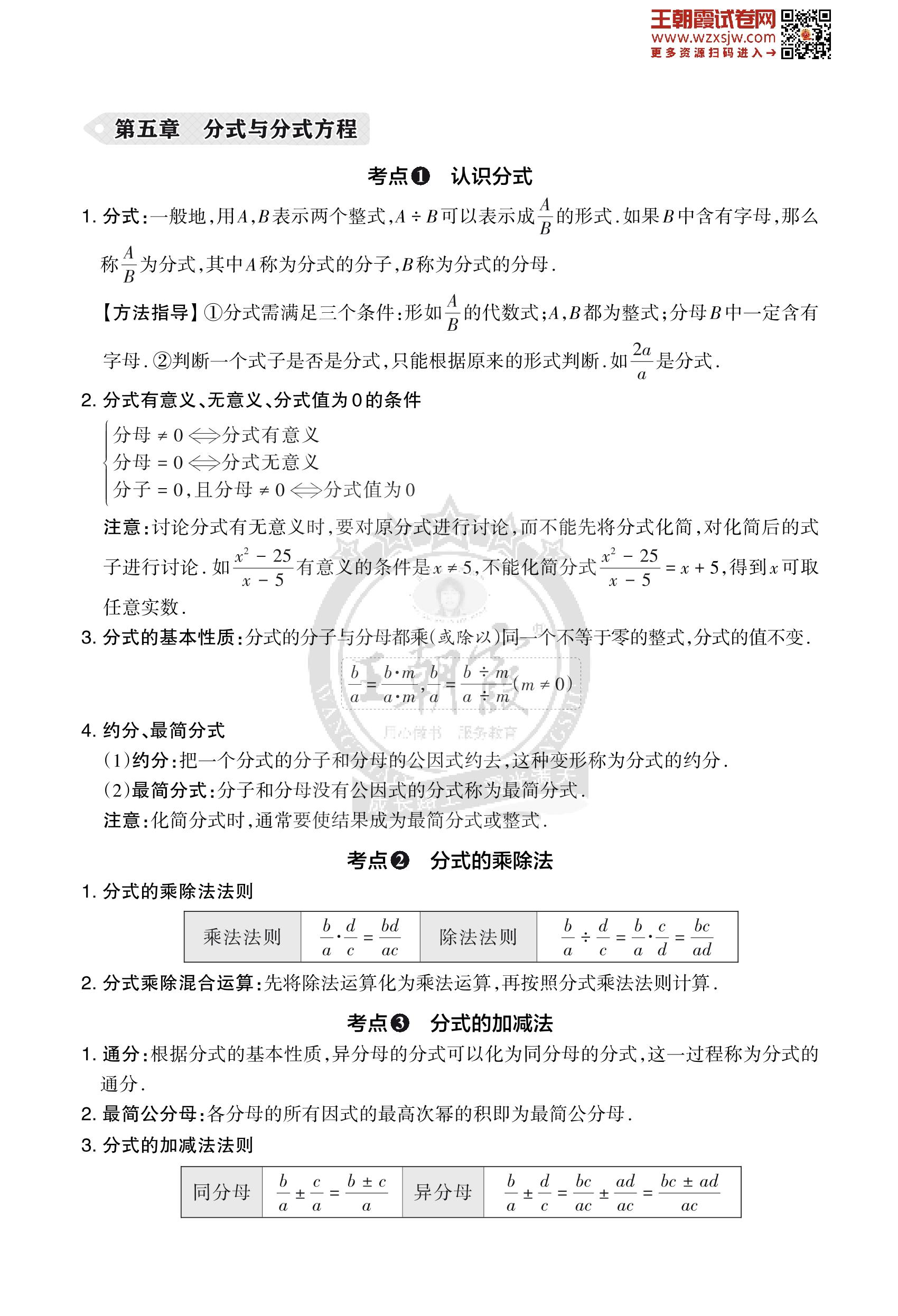 王朝霞期末知识梳理——第五章 分式与分式方程八年级下册数学(北师版)