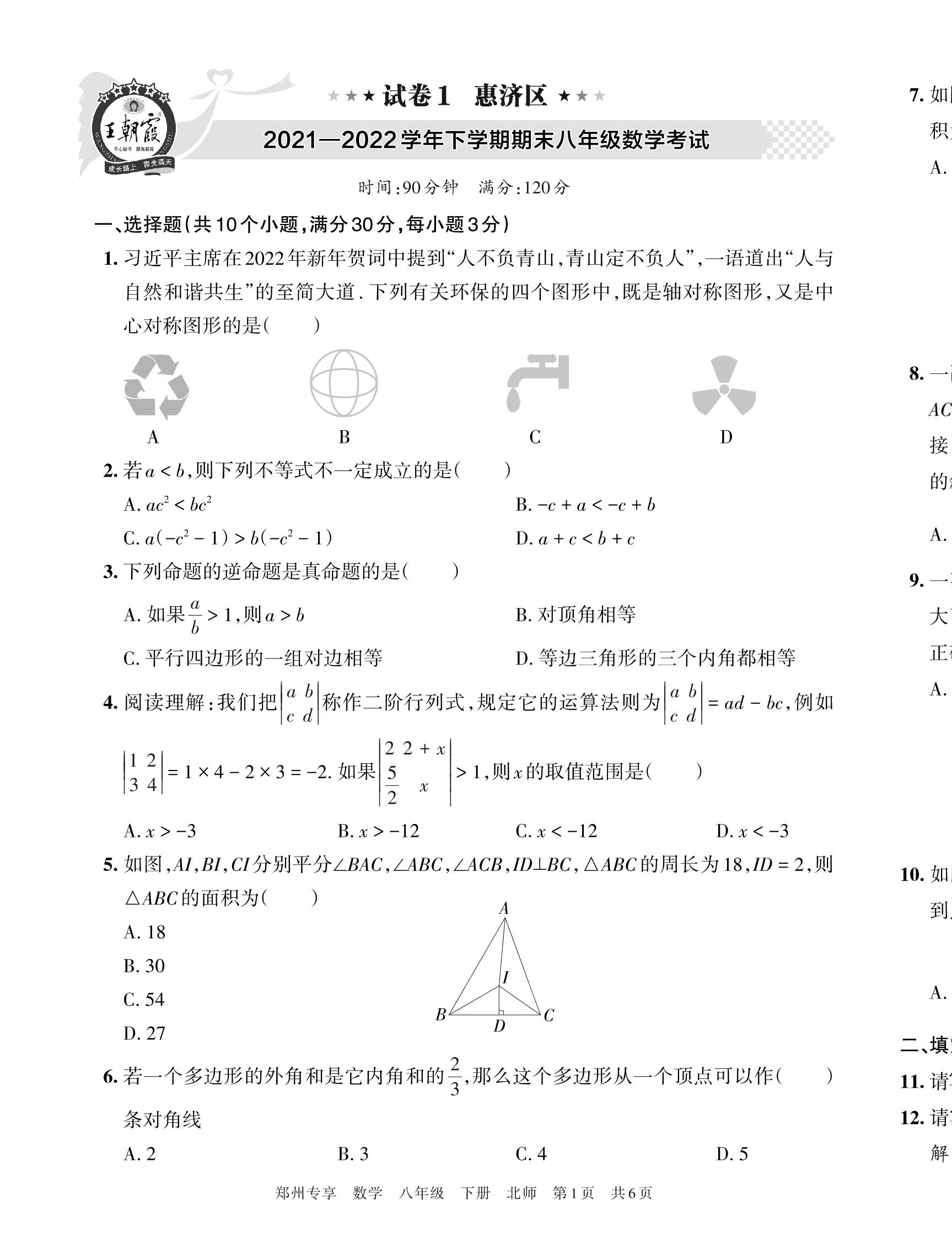 惠济区2021—2022学年下学期期末八年级数学考试【1】