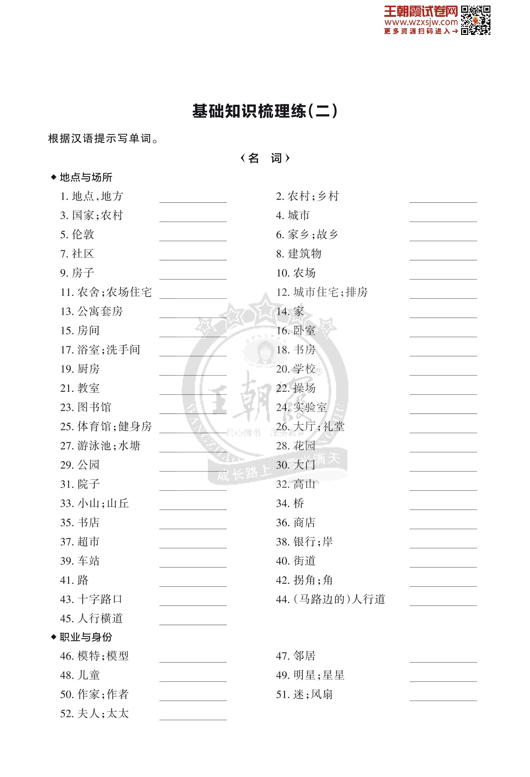 王朝霞期末过课本——基础知识梳理练(二)七年级下册英语(新课标版)_R230504163543279