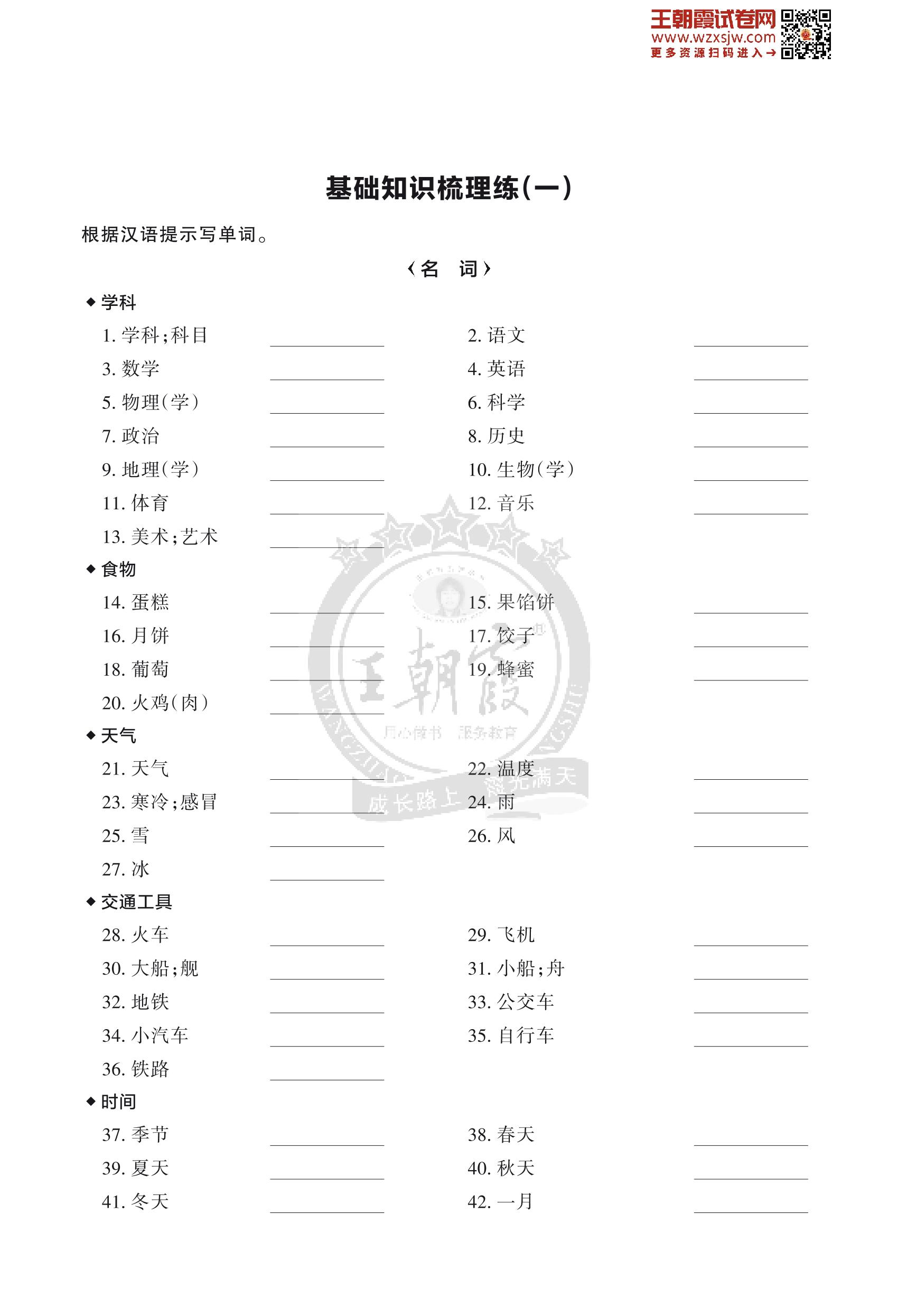 王朝霞期末过课本——基础知识梳理练(一)七年级下册英语(新课标版)_R230504163544729