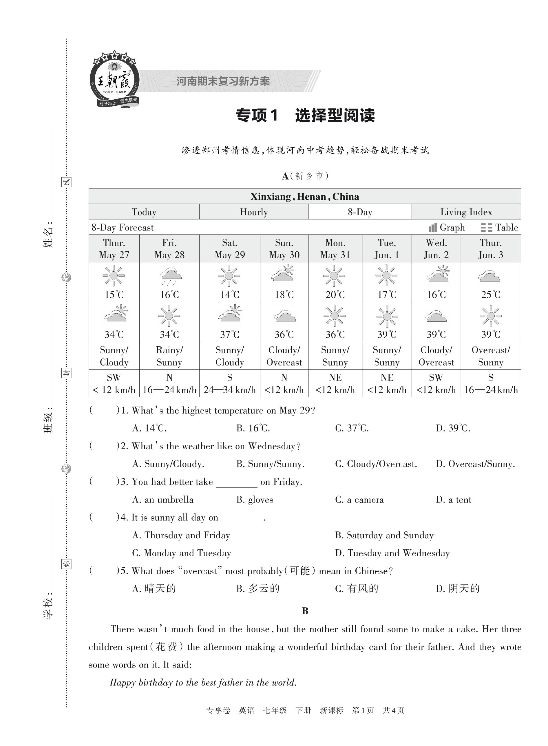 王朝霞期末专项卷——选择型阅读七年级下册英语(新课标版)_R230504163544714【1】