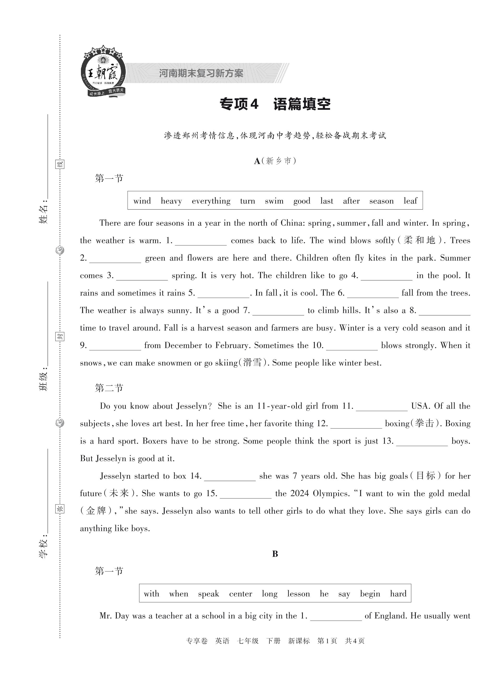 王朝霞期末专项卷——语篇填空七年级下册英语(新课标版)_R230504163544843【4】