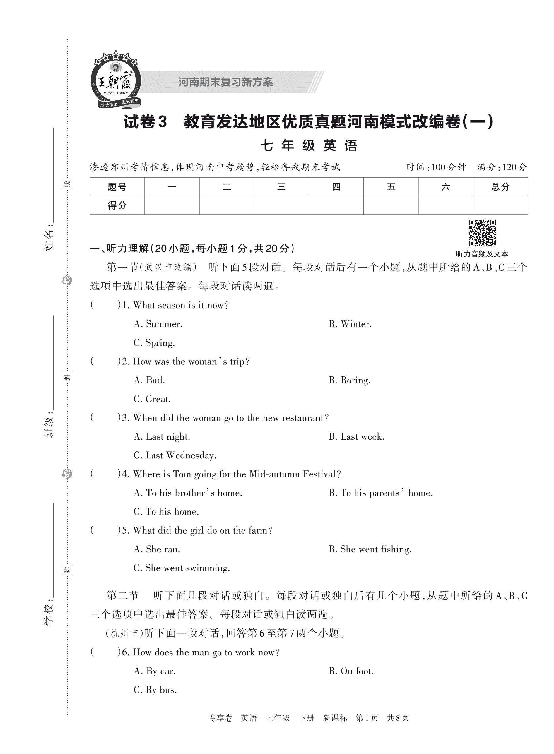 教育发达地区优质真题河南模式改编卷(一)七年级下册英语(新课标版)【3】