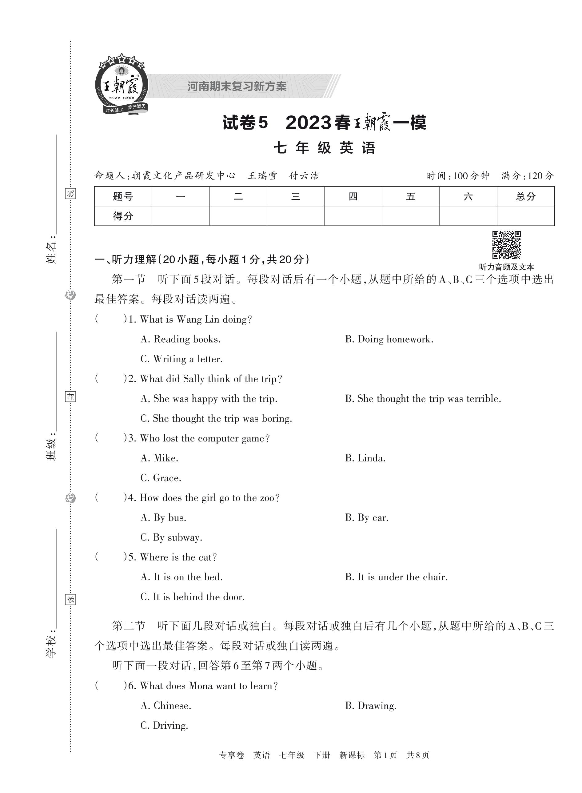 王朝霞期末模拟卷七年级下册英语(新课标版)【5】