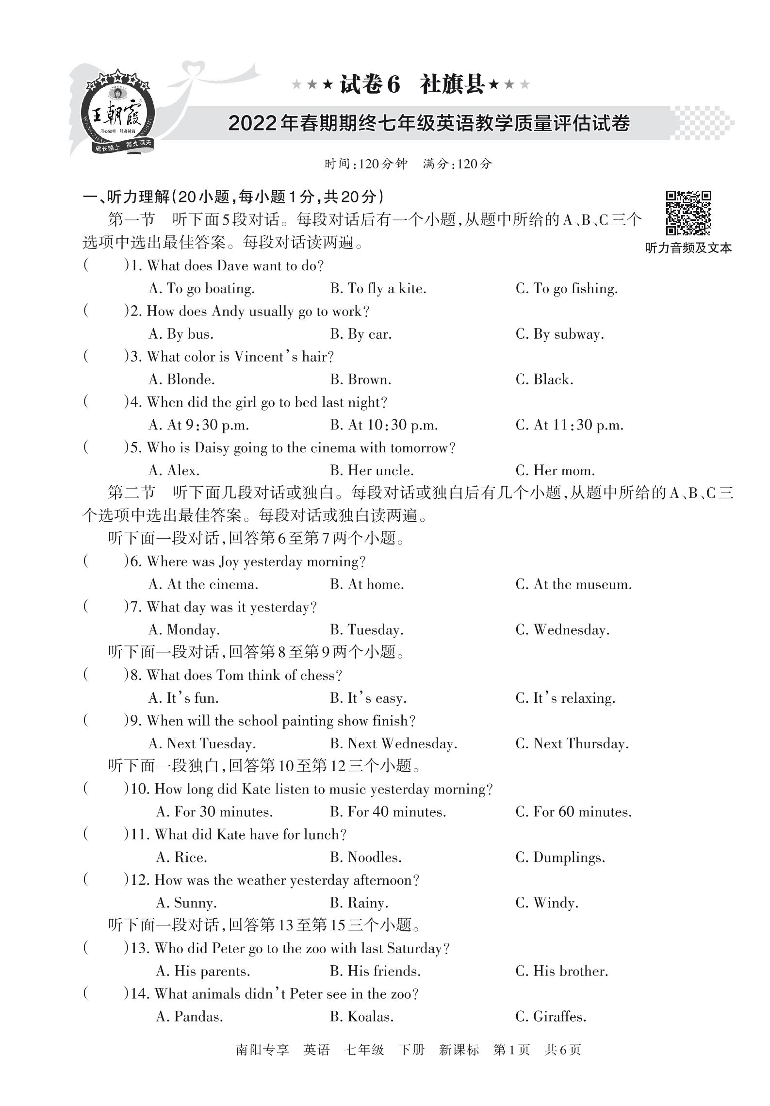 社旗县2022年春期期终七年级英语教学质量评估试卷(新课标版)【6】