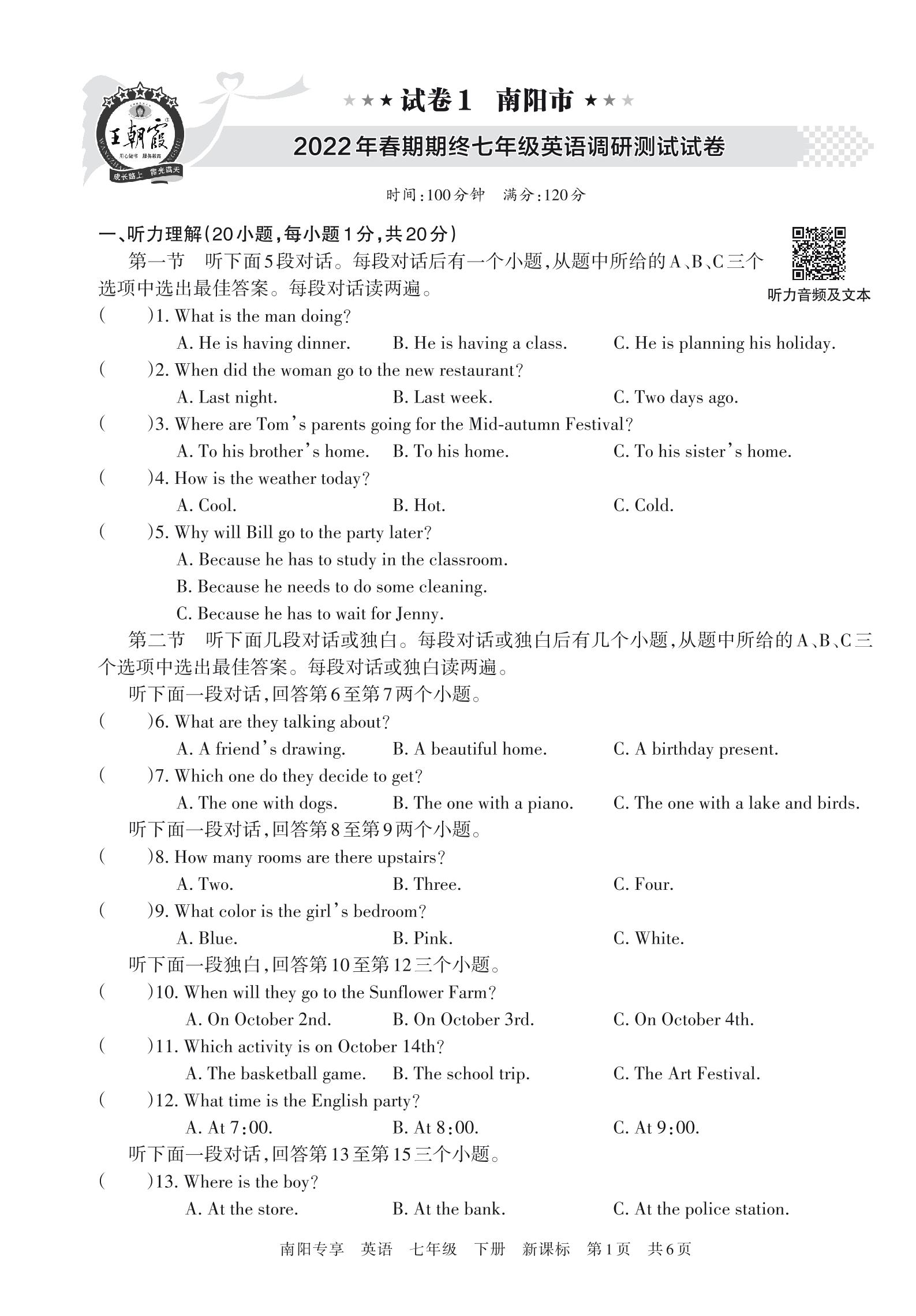 南阳市2022年春期期终七年级英语调研测试试卷(新课标版)【1】
