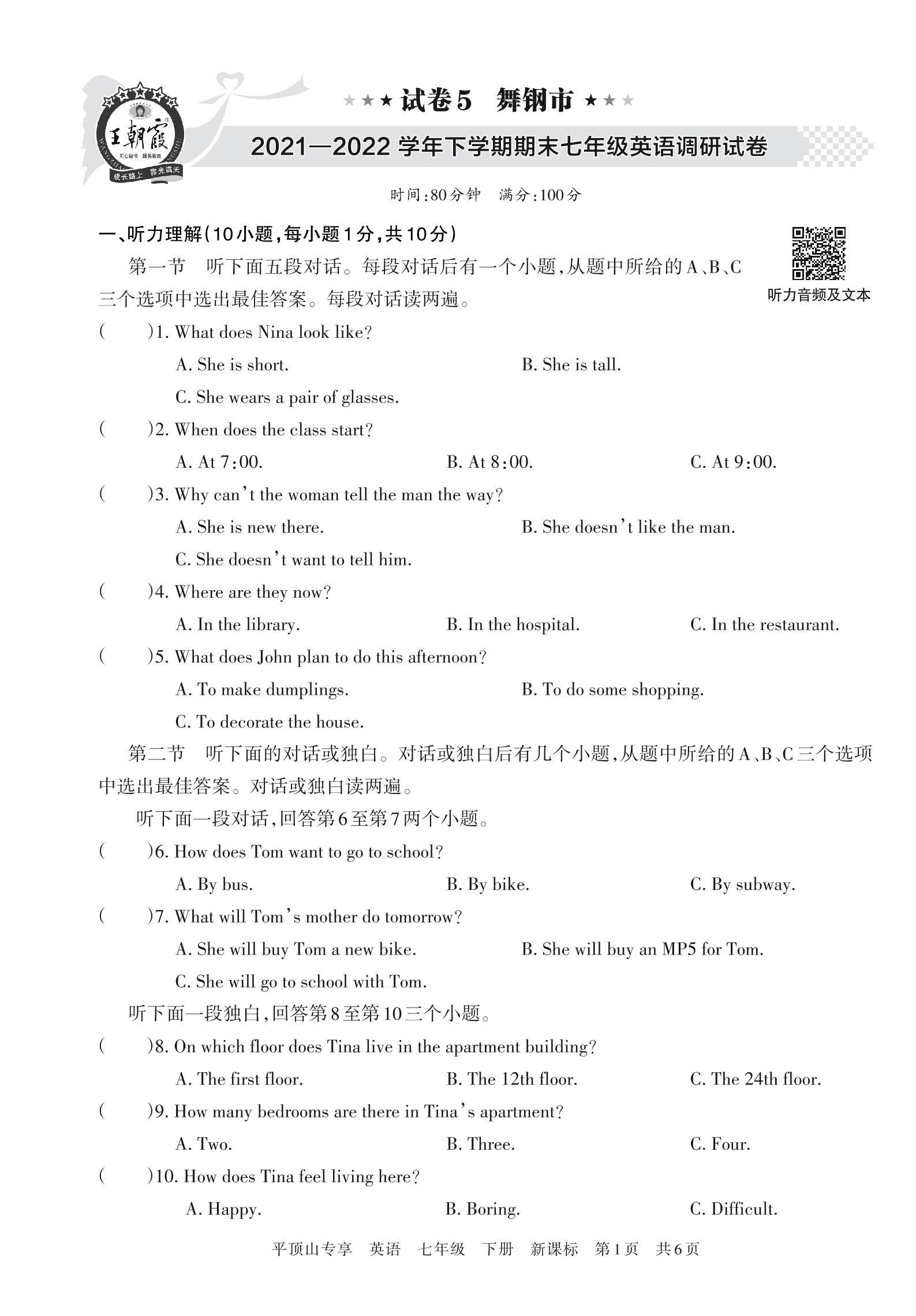 舞钢市2021—2022 学年下学期期末七年级英语调研试卷(新课标版)【5】