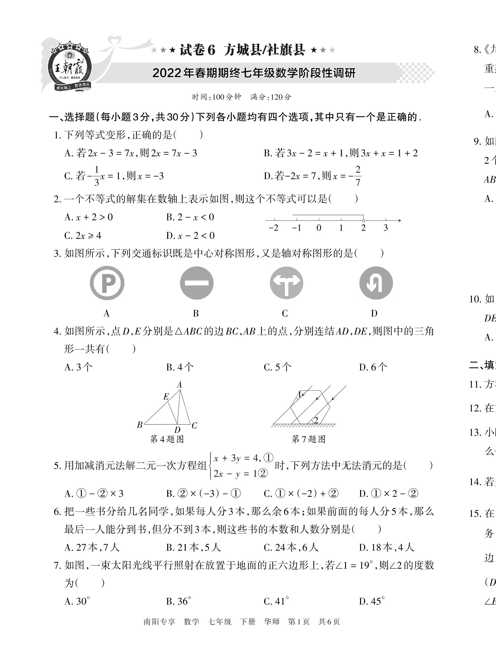 方城县、社旗县2022年春期期终七年级数学阶段性调研(华师版)【6】
