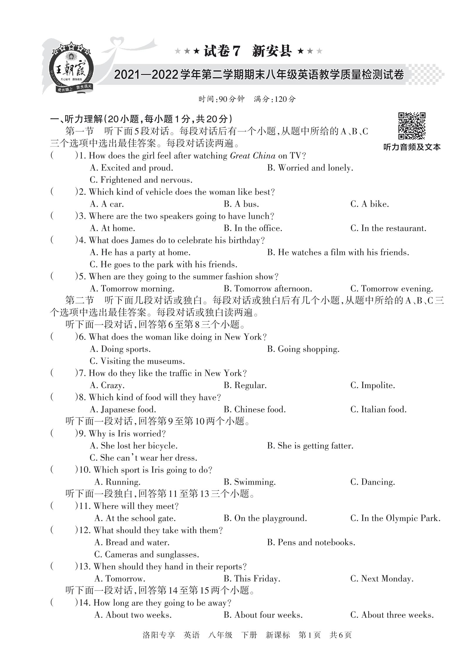 新安县2021—2022学年第二学期期末八年级英语教学质量检测试卷(新课标版)【7】