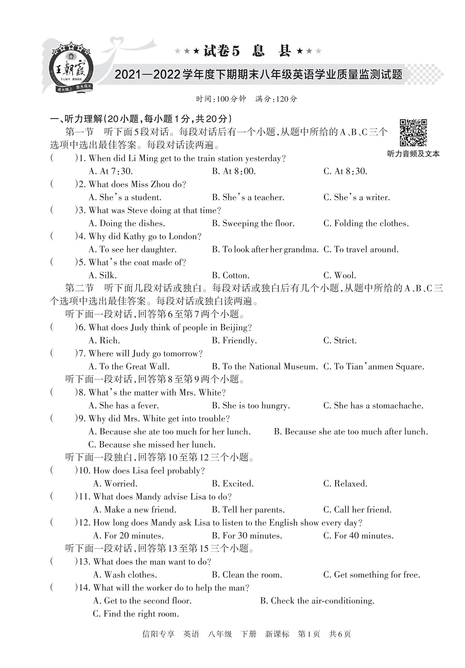 息县2021—2022学年度下期期末八年级英语学业质量监测试题(新课标版)【5】