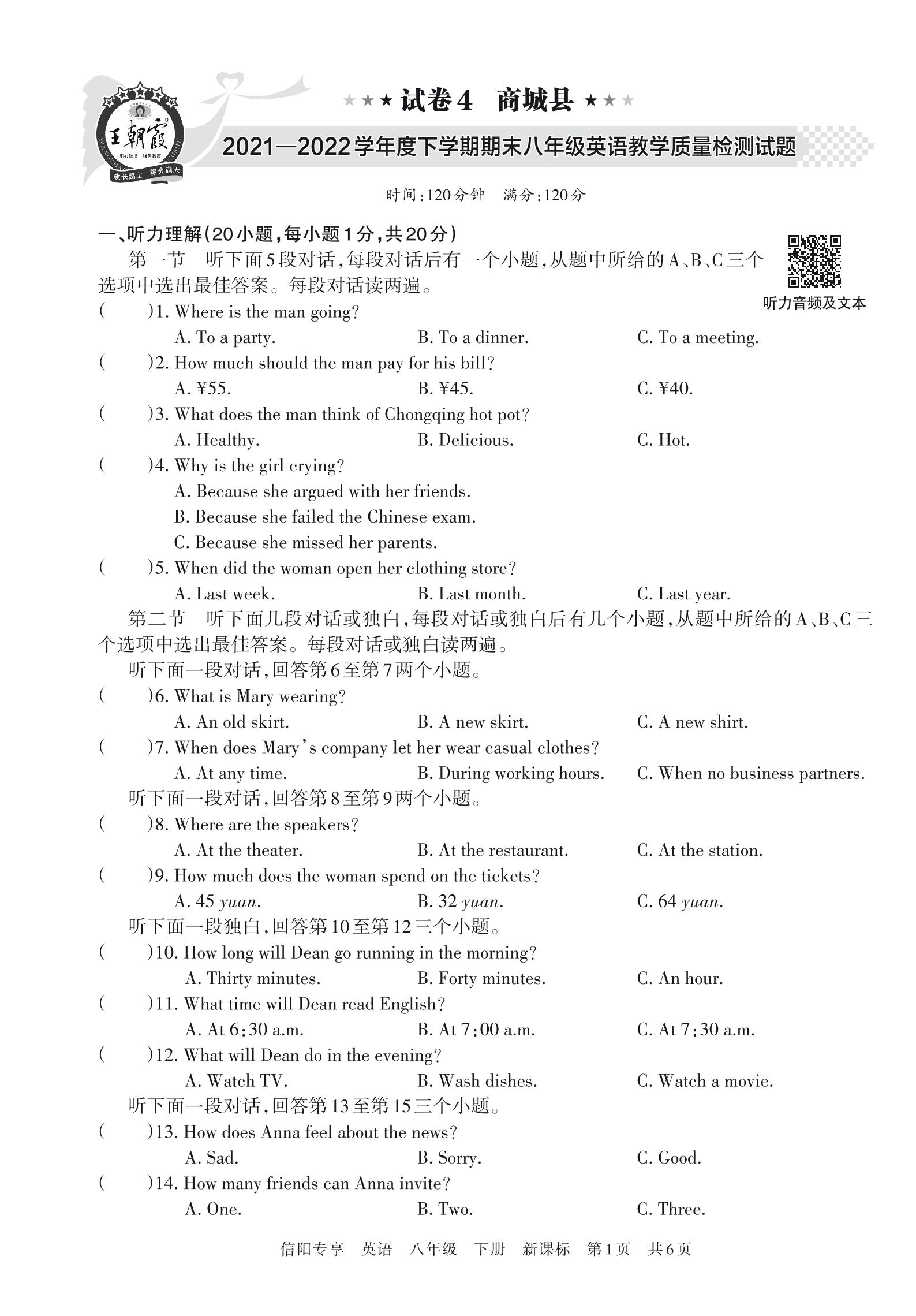 商城县2021—2022学年度下学期期末八年级英语教学质量检测试题(新课标版)【4】