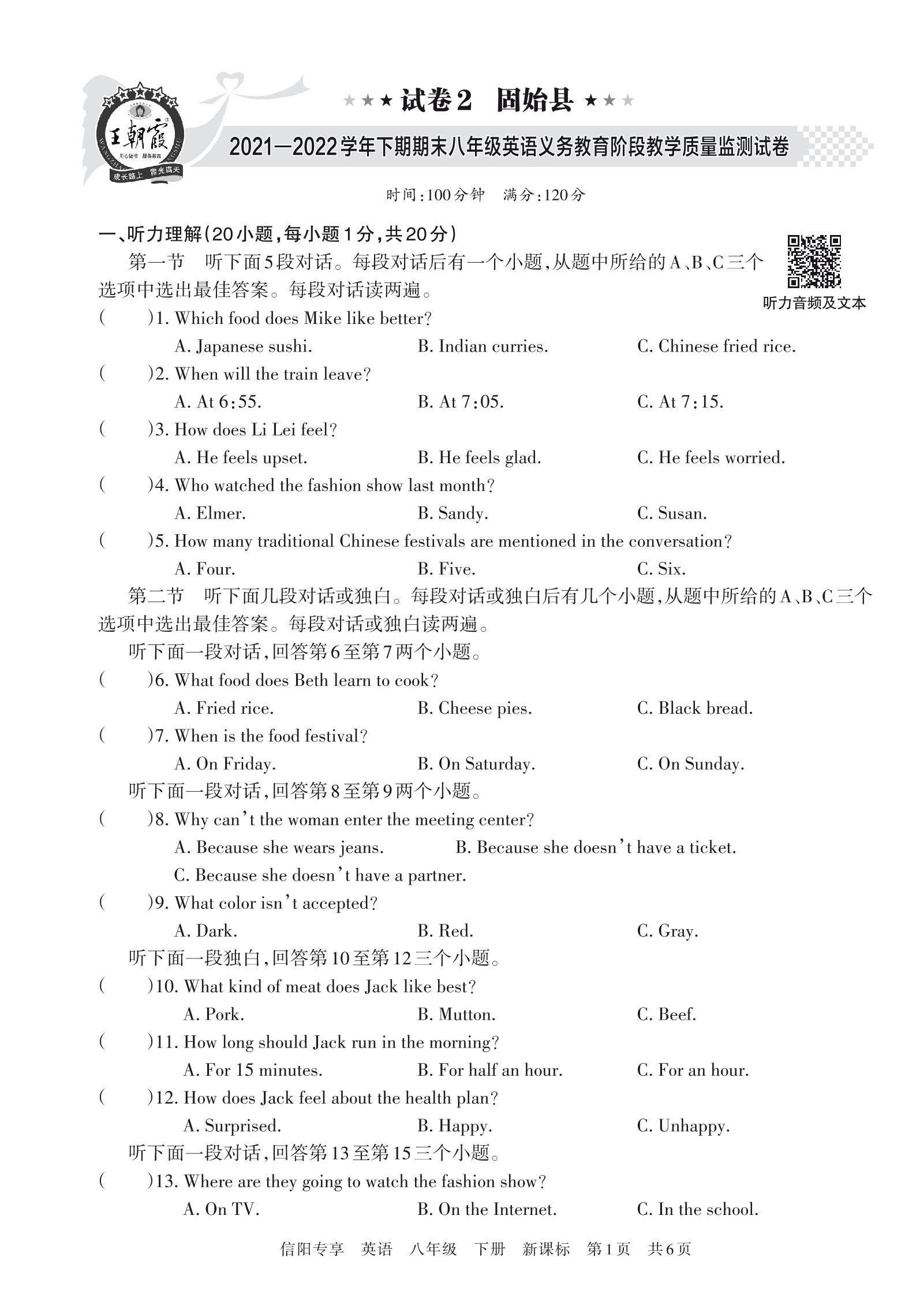 固始县2021—2022学年下期期末八年级英语义务教育阶段教学质量监测试卷(新课标版)【2】