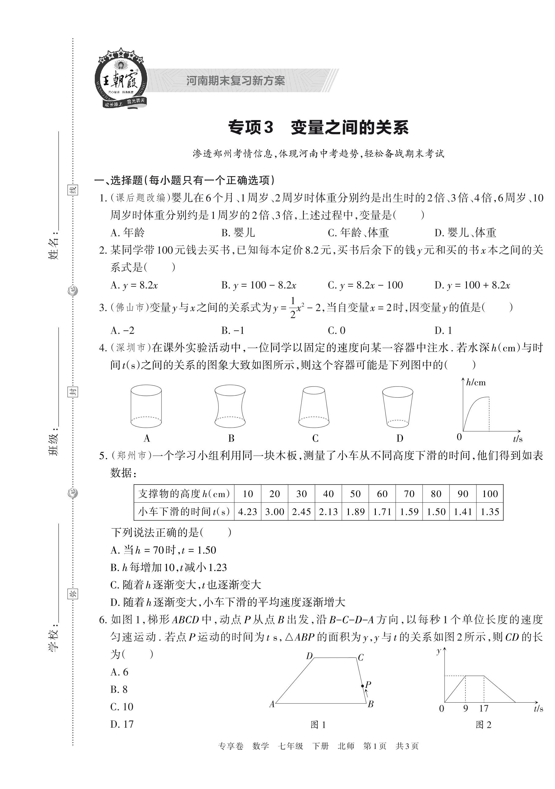 王朝霞期末专项卷——变量之间的关系七年级下册数学(北师版)【3】