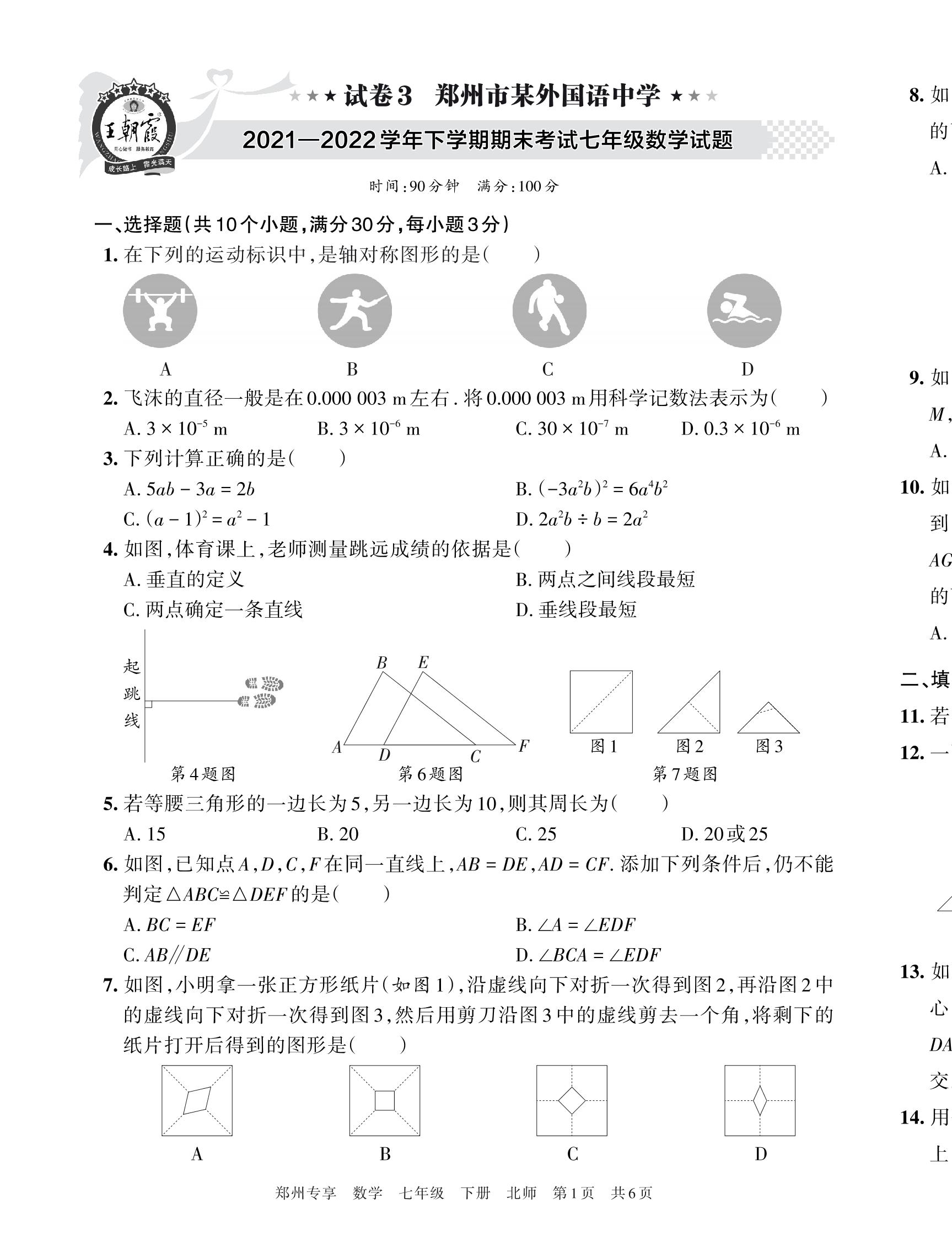 郑州市某外国语中学2021—2022学年下学期期末考试七年级数学试题【3】