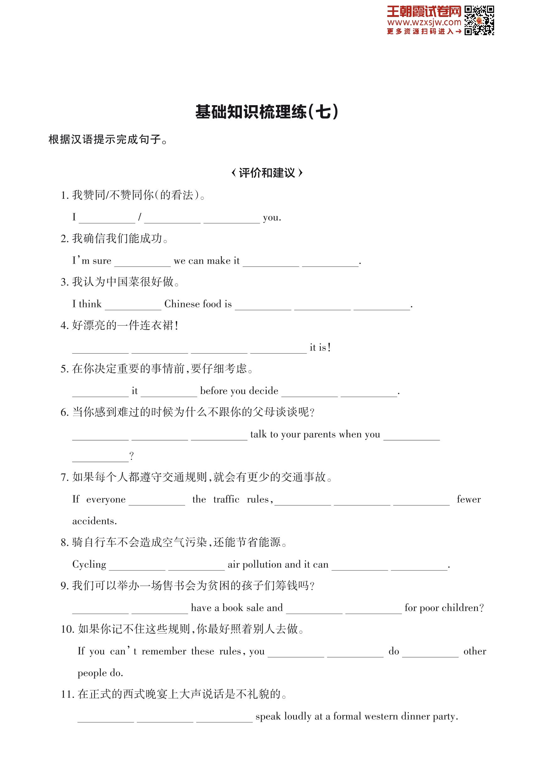 王朝霞期末过课本——基础知识梳理练(七)八年级下册英语(新课标版)_R230504173747120