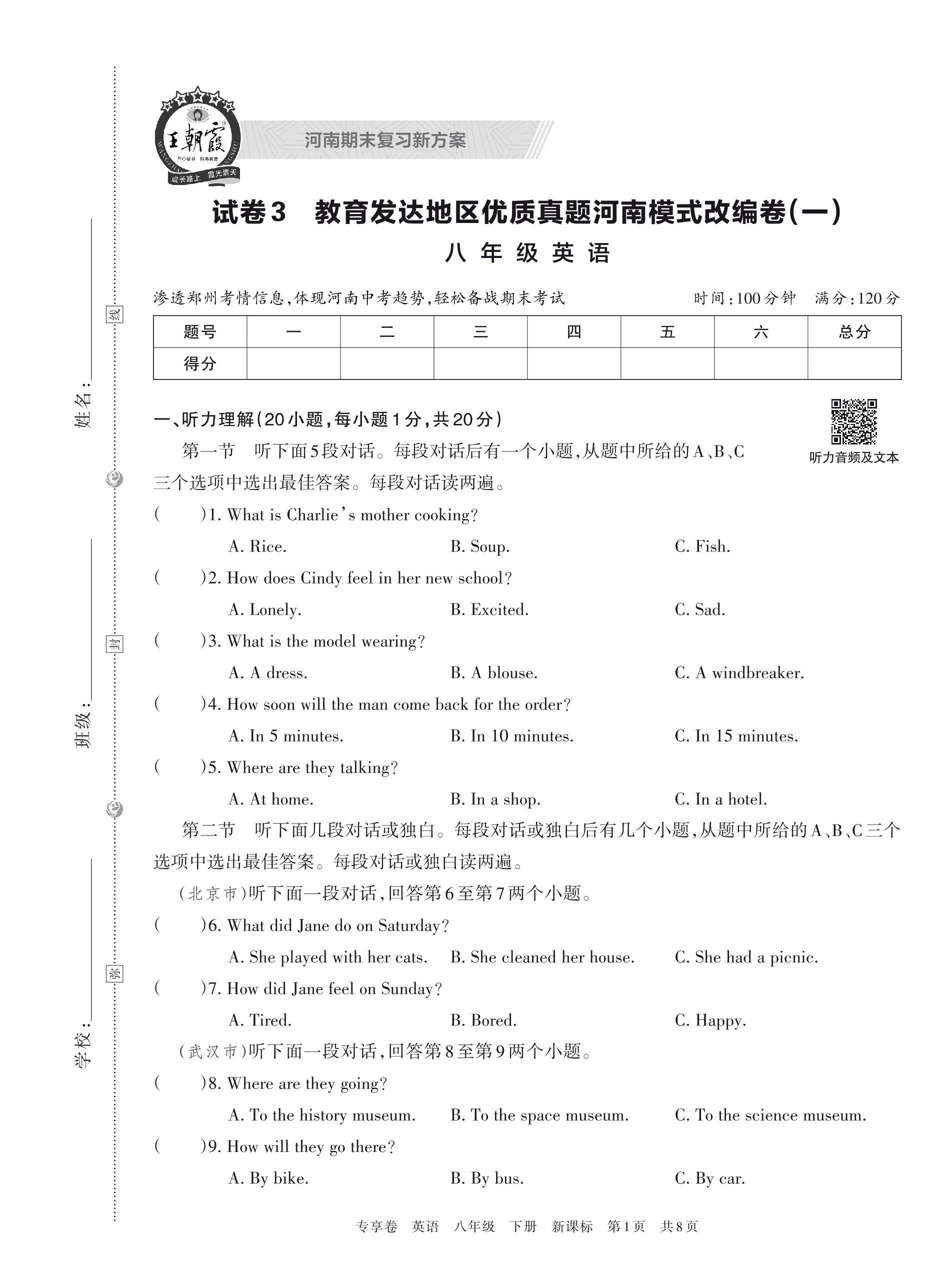 教育发达地区优质真题河南模式改编卷(一)八年级下册英语(新课标版)【3】