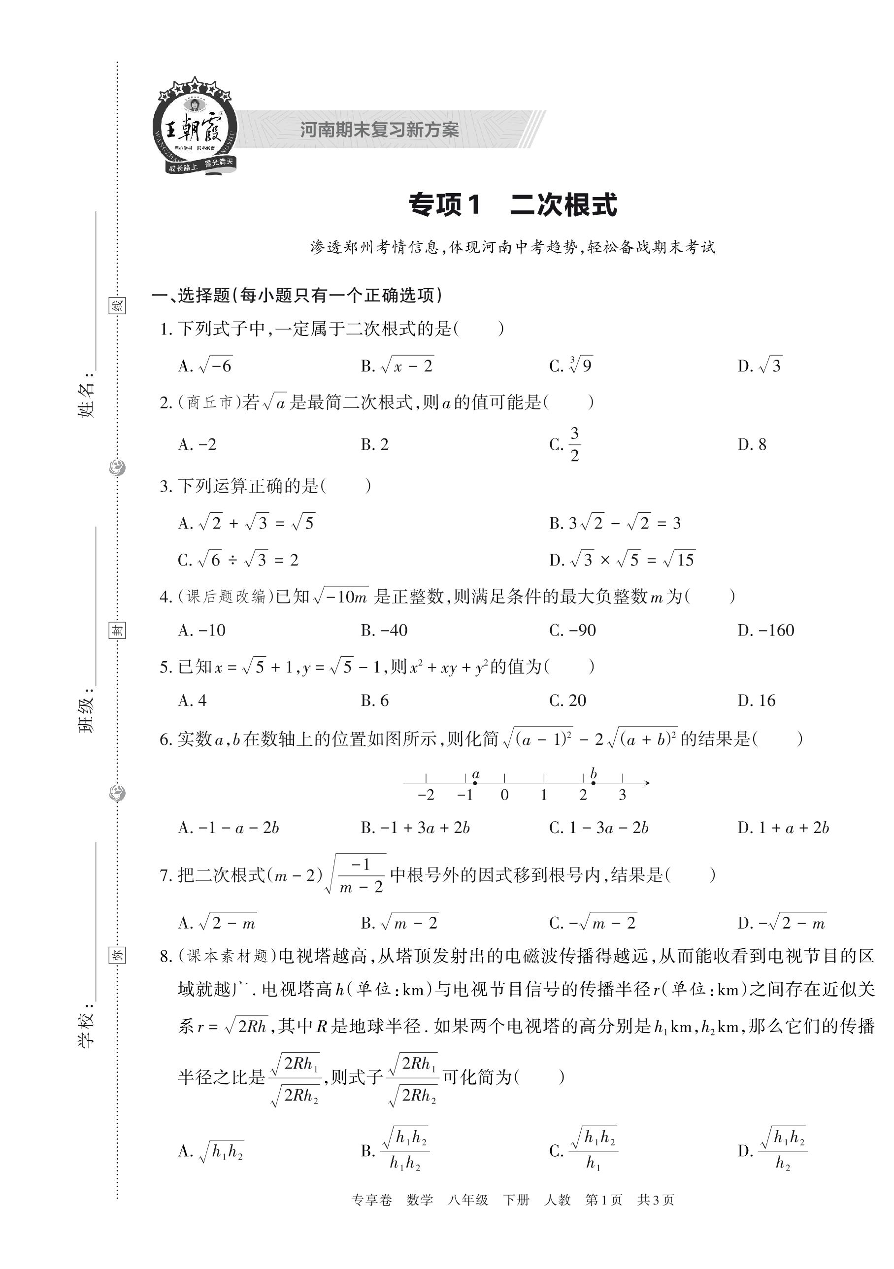 王朝霞期末专项卷——二次根式八年级下册数学(人教版)【1】