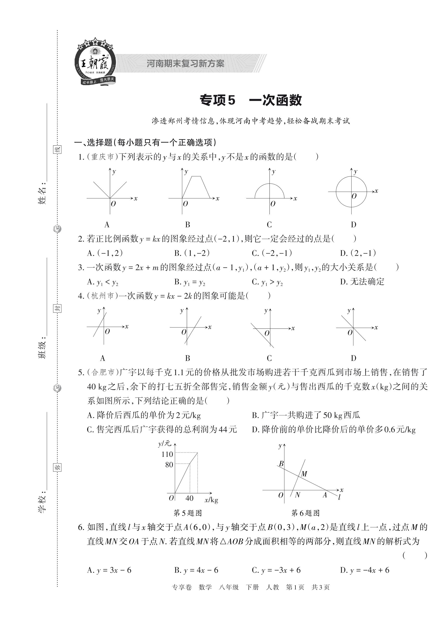 王朝霞期末专项卷——一次函数八年级下册数学(人教版)【5】