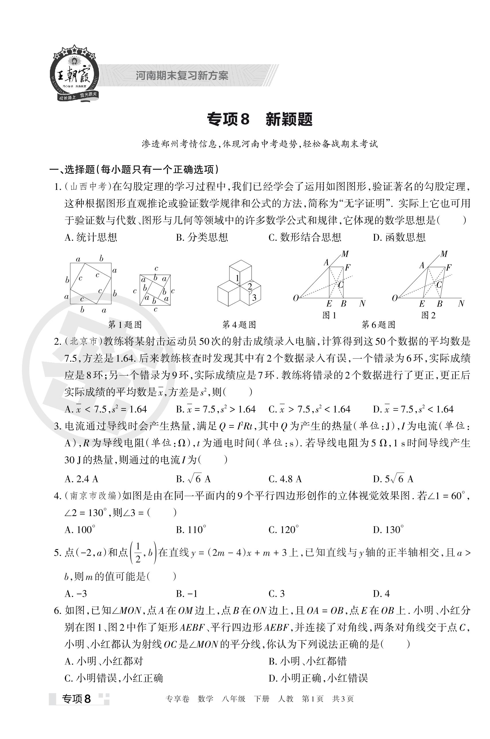 王朝霞期末专项卷——新颖题八年级下册数学(人教版)【8】