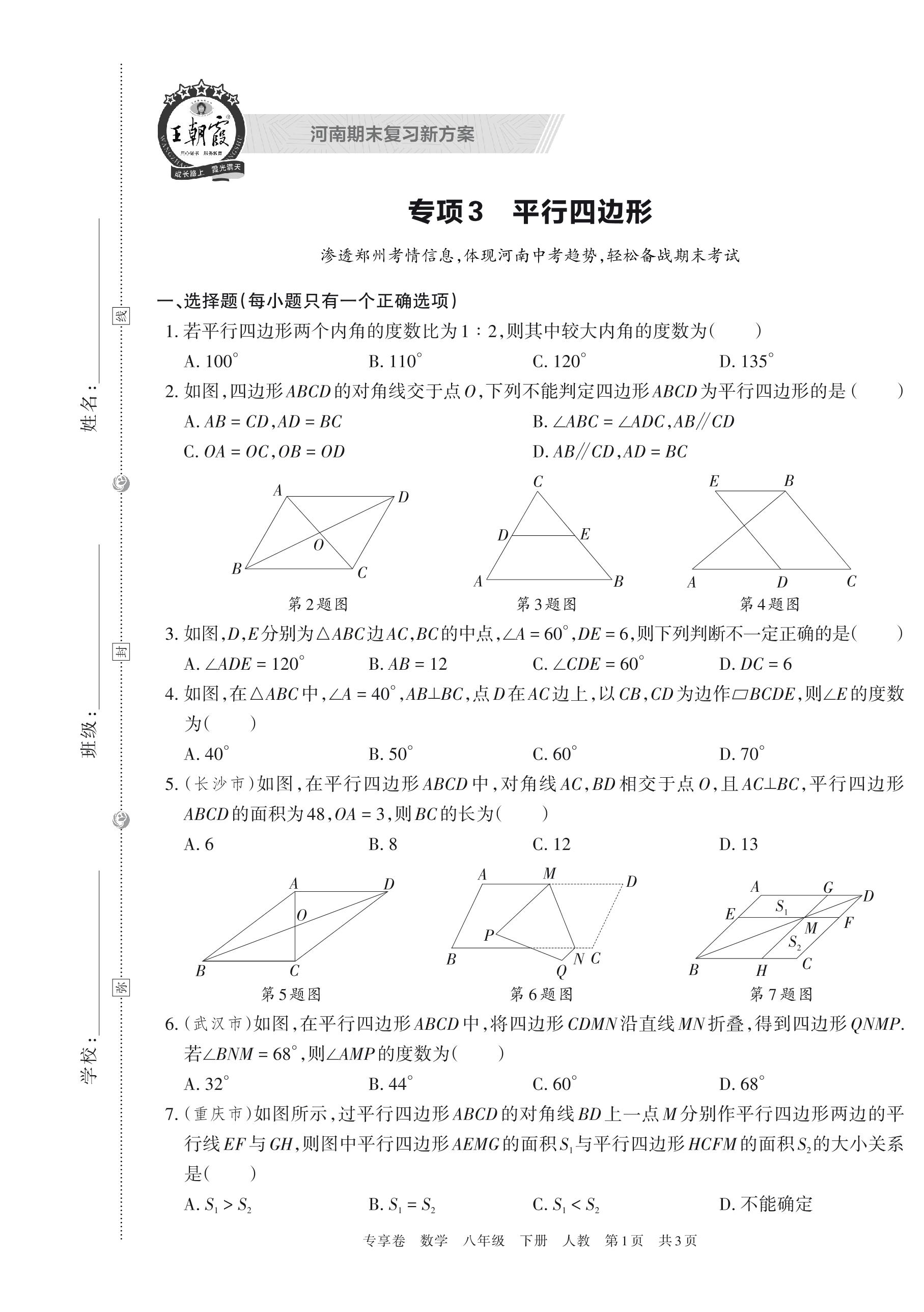 王朝霞期末专项卷——平行四边形八年级下册数学(人教版)【3】