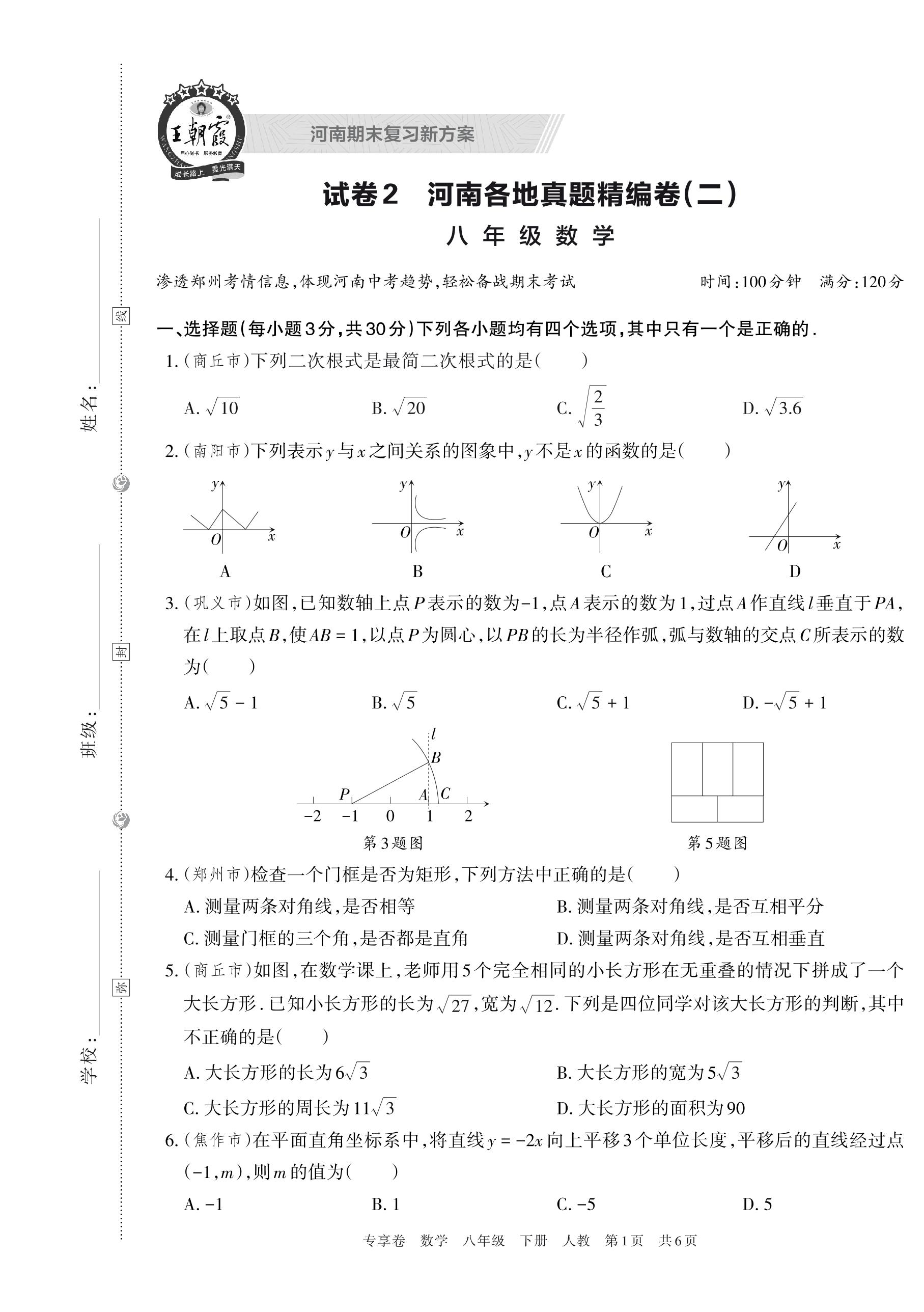 河南各地真题精编卷(二)八年级下册数学(人教版)_R230505154711127【2】