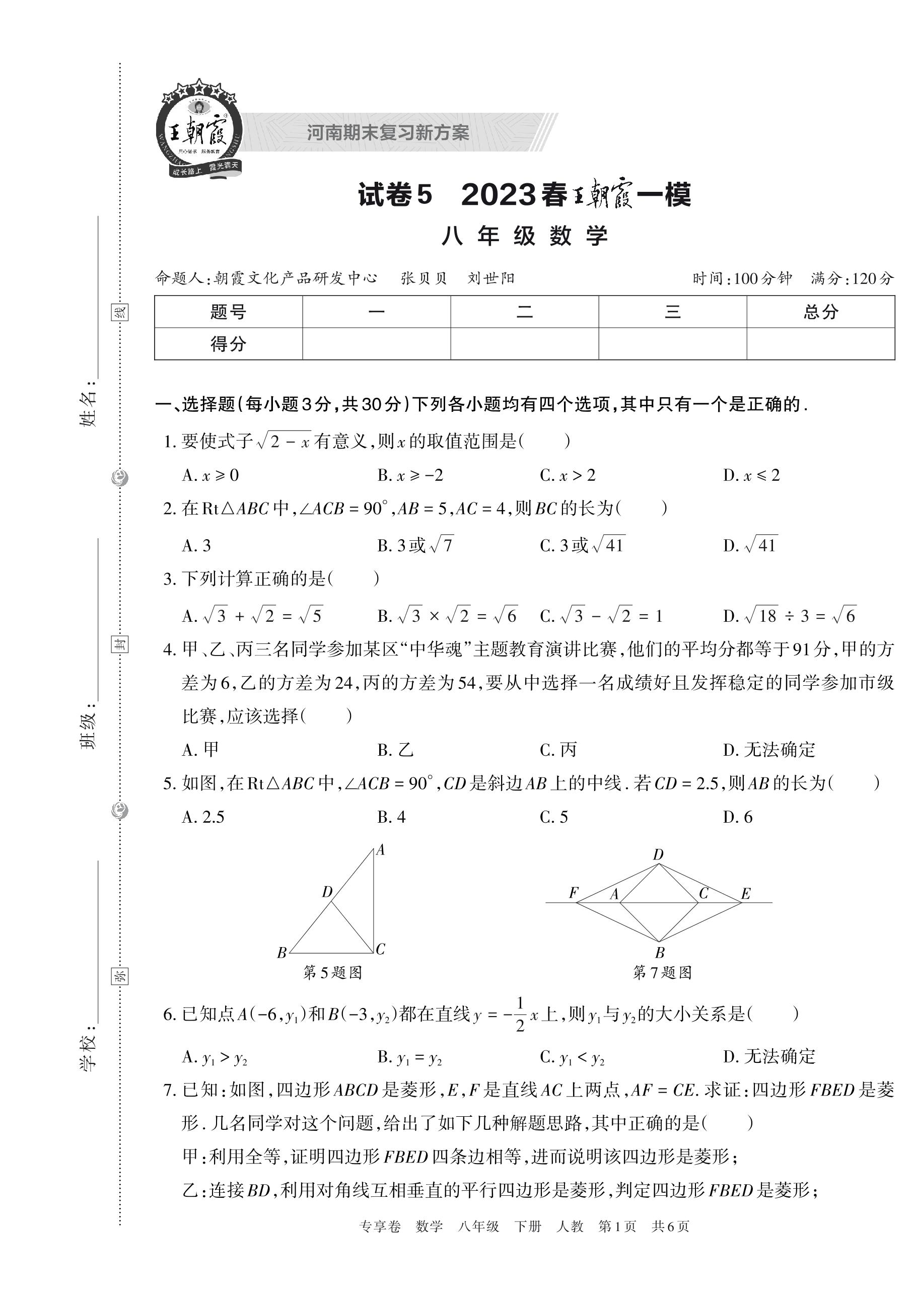 王朝霞期末模拟卷八年级下册数学(人教版)_R230505154712217【5】