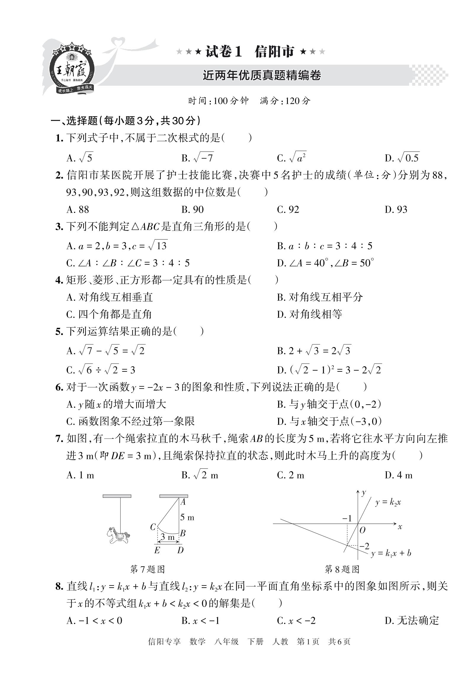 信阳市近两年优质真题精编卷八年级下册数学(人教版)【1】