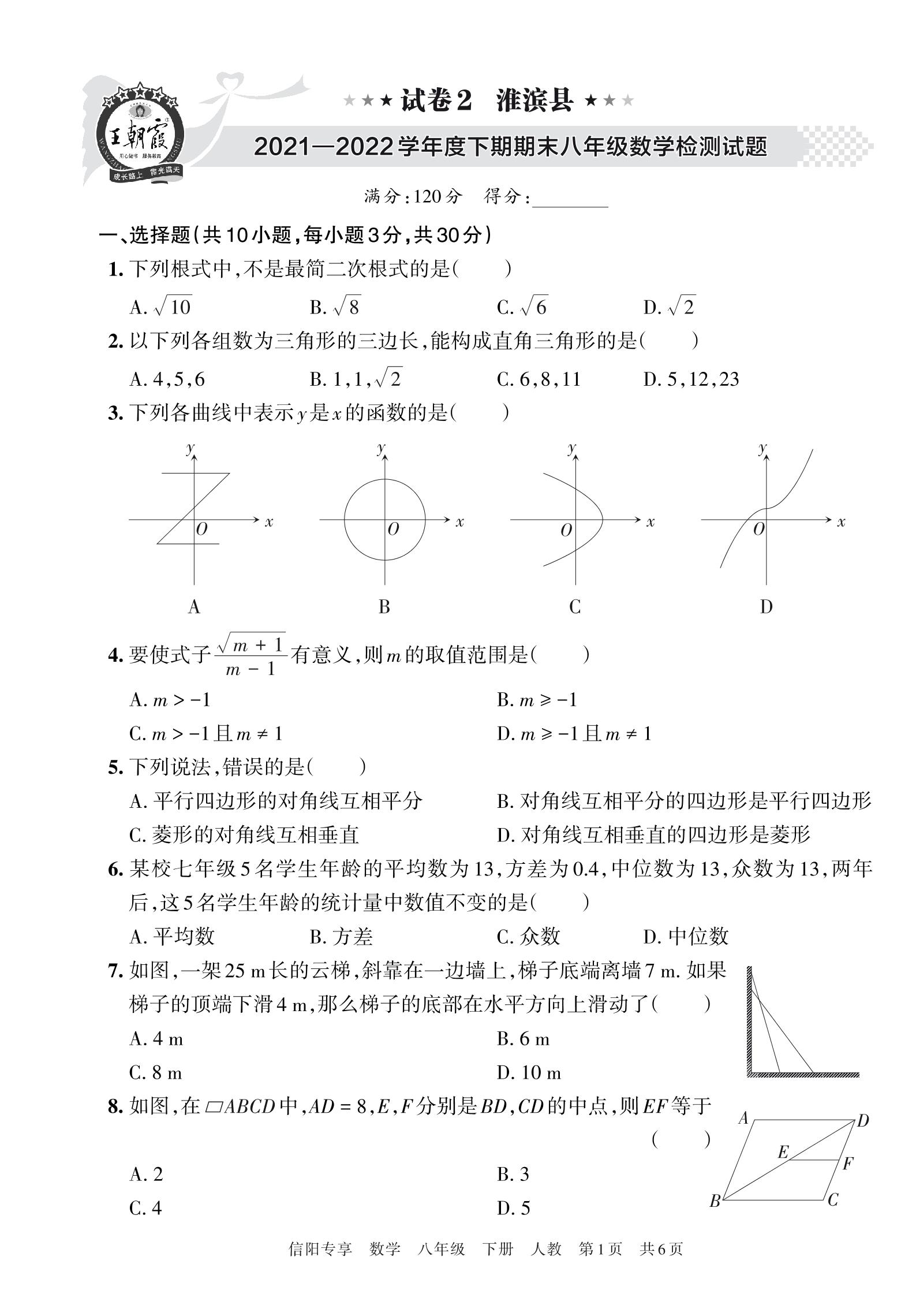 淮滨县2021—2022学年度下期期末八年级数学检测试题(人教版)【2】