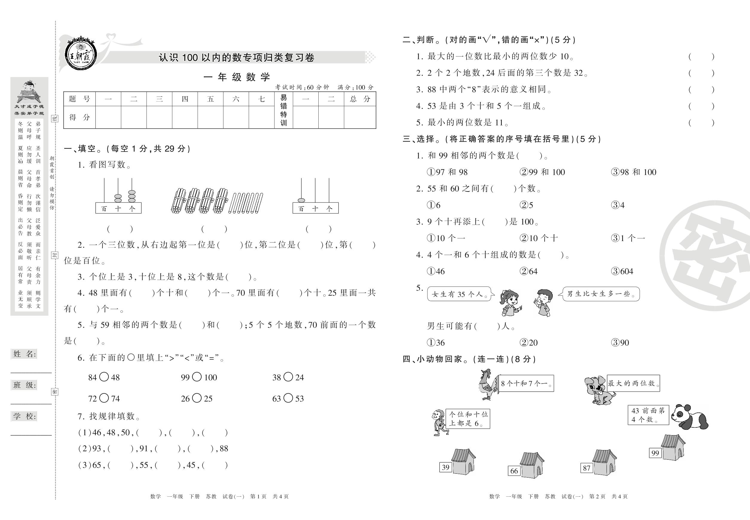 王朝霞期末专项卷一年级下册数学(苏教版)_R210802222606【1】