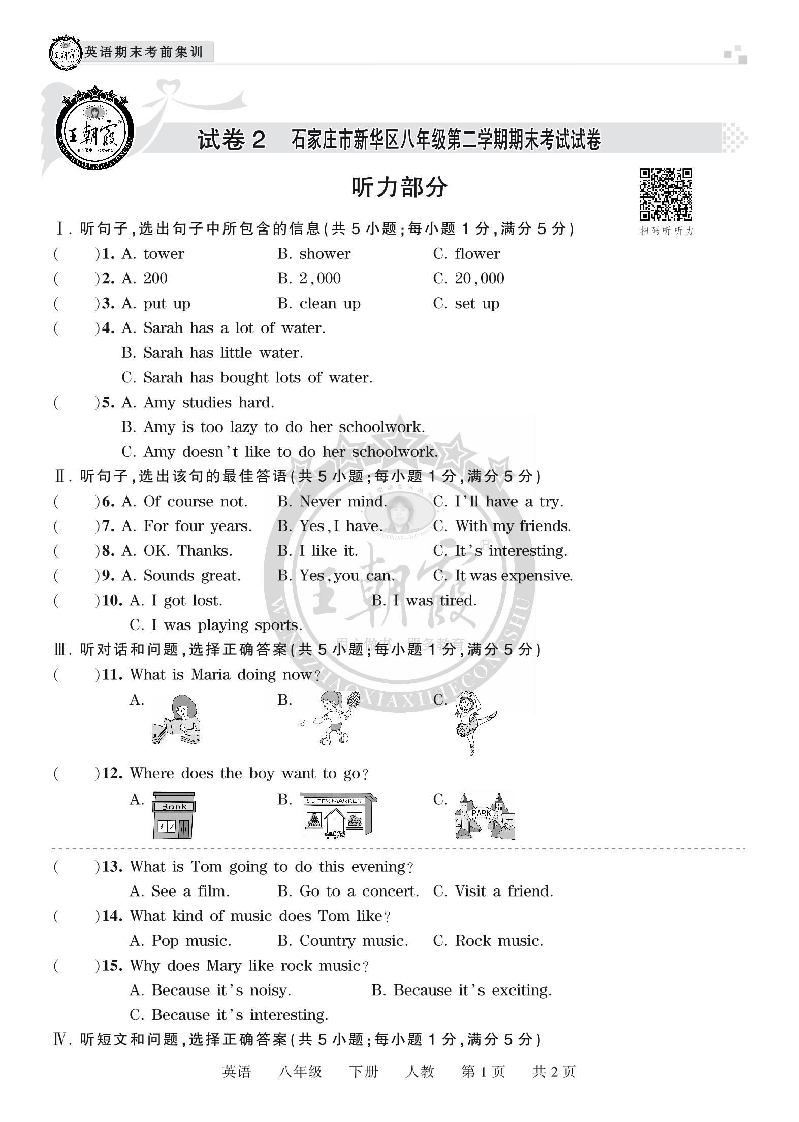 试卷2 石家庄市新华区 八年级下册英语人教版