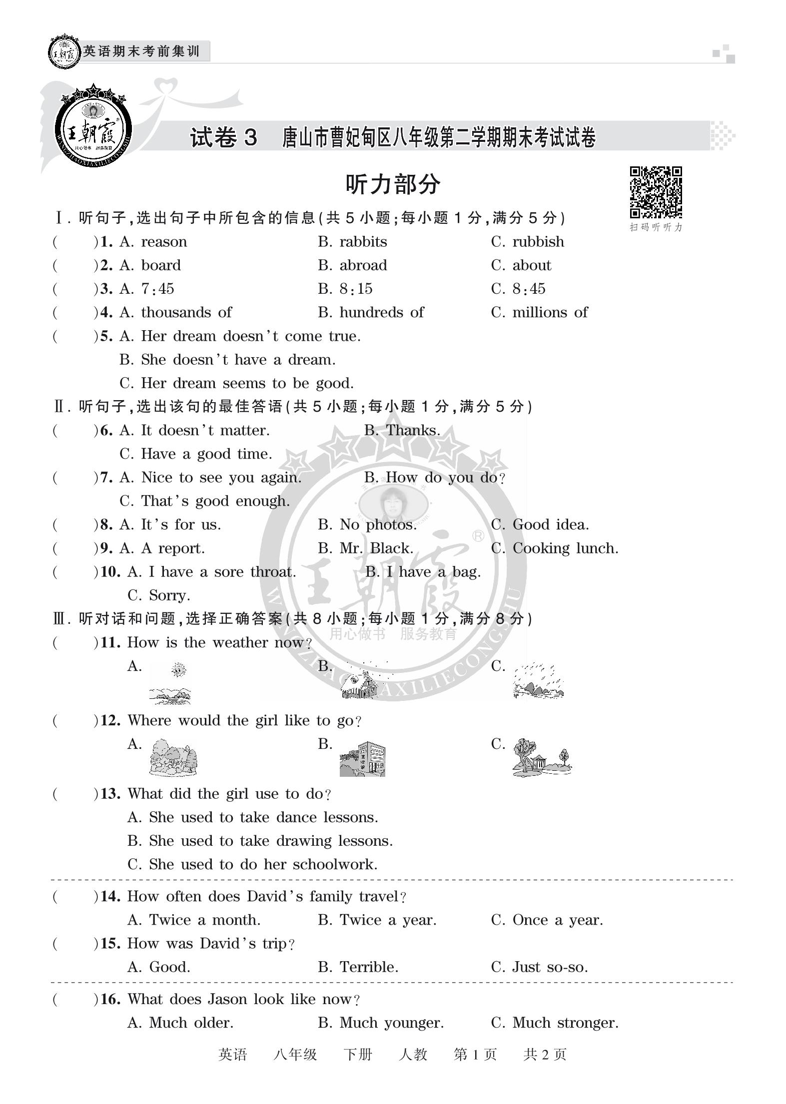 试卷3 唐山市曹妃甸区 八年级下册英语人教版