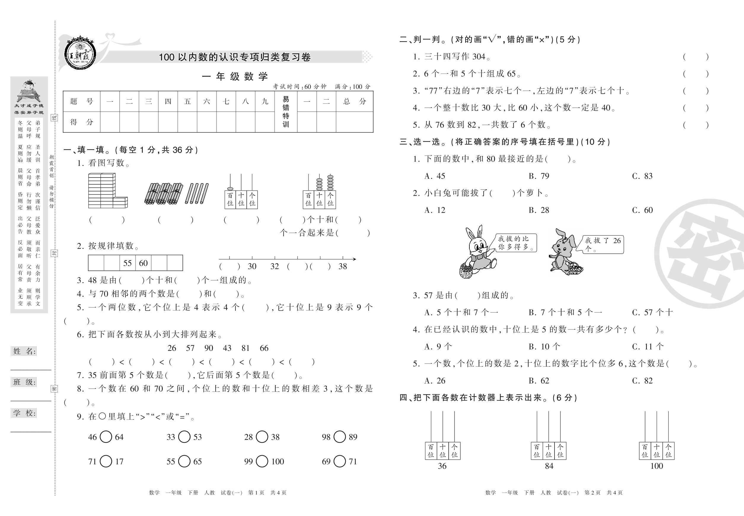 王朝霞期末专项卷一年级下册数学(人教版)_R210802222834【1】