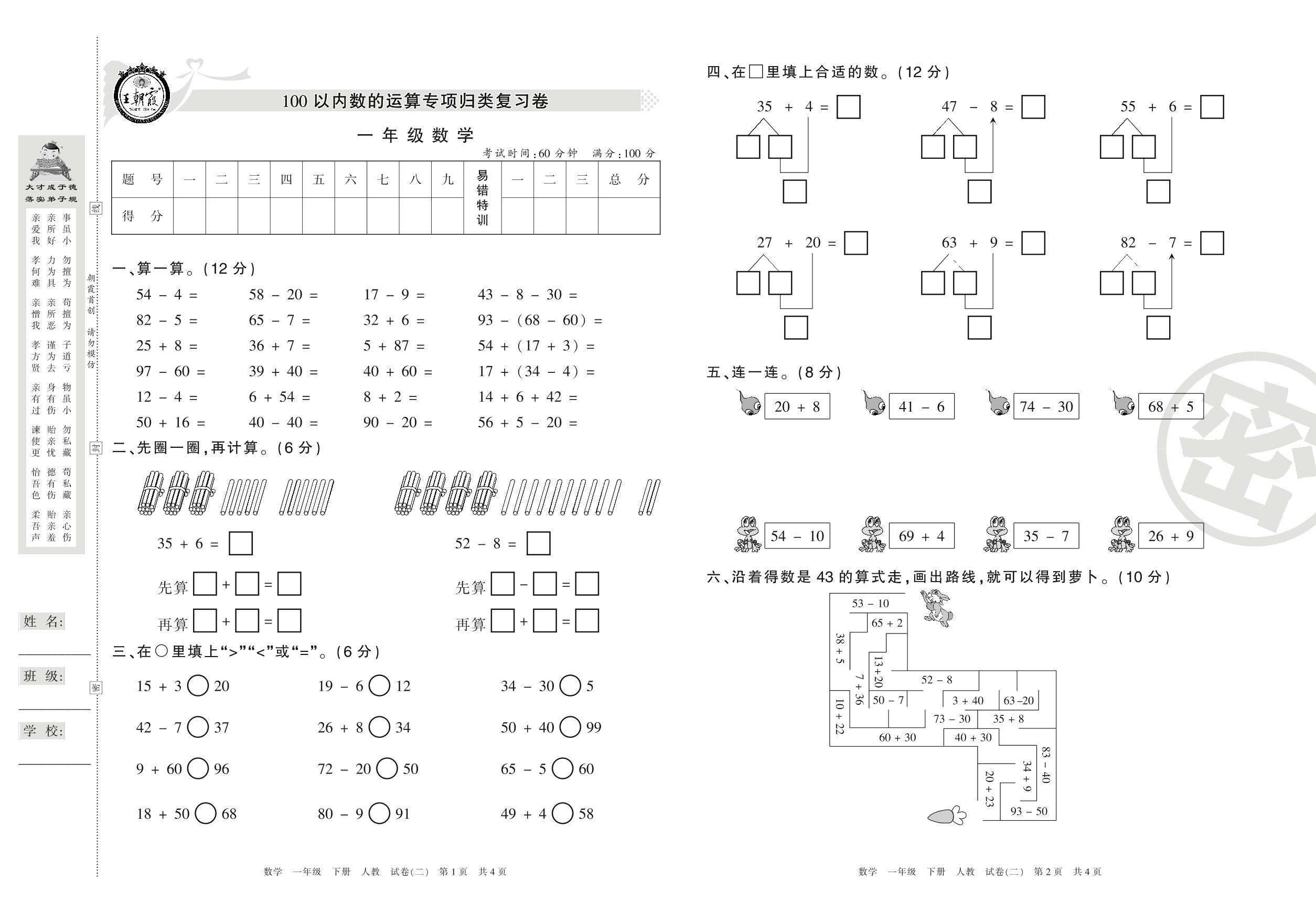 王朝霞期末专项卷一年级下册数学(人教版)_R210802222839【2】