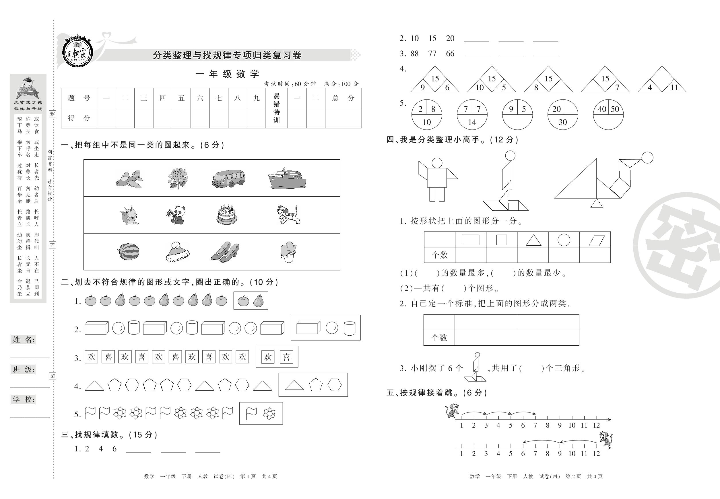 王朝霞期末专项卷一年级下册数学(人教版)_R210802222854【4】