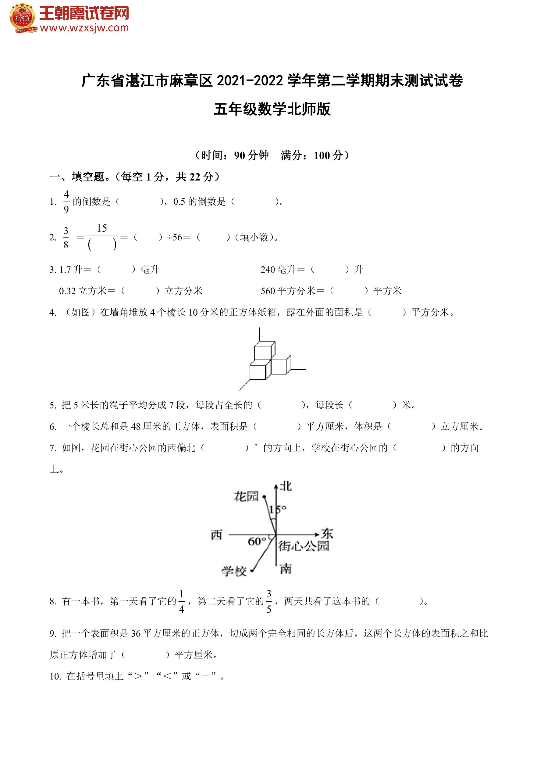 广东省湛江市麻章区2021-2022学年第二学期期末测试试卷五年级数学(北师版)