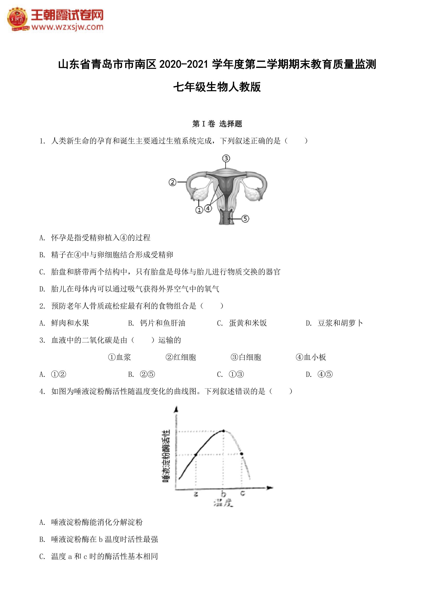 山东省青岛市市南区2020-2021学年第二学期期末教育质量监测七年级生物(人教版)