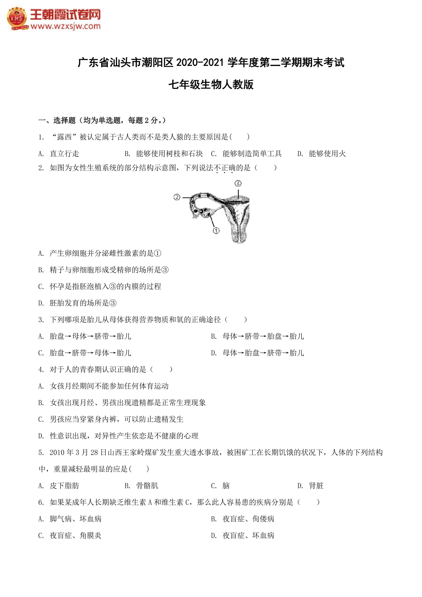 广东省汕头市潮阳区2020-2021学年第二学期期末考试七年级生物(人教版)