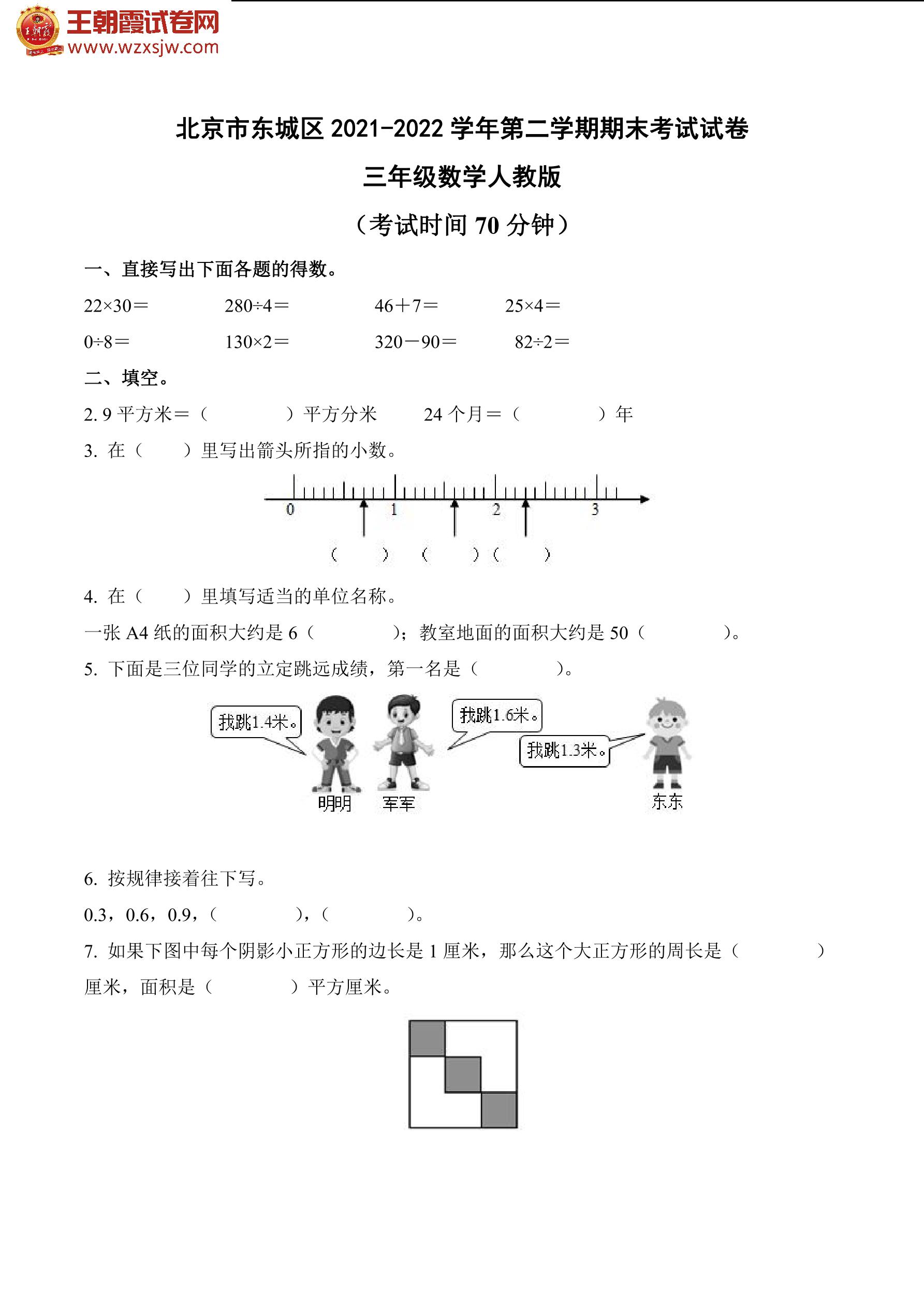 北京市东城区2021-2022学年第二学期期末考试试卷三年级数学(人教版)