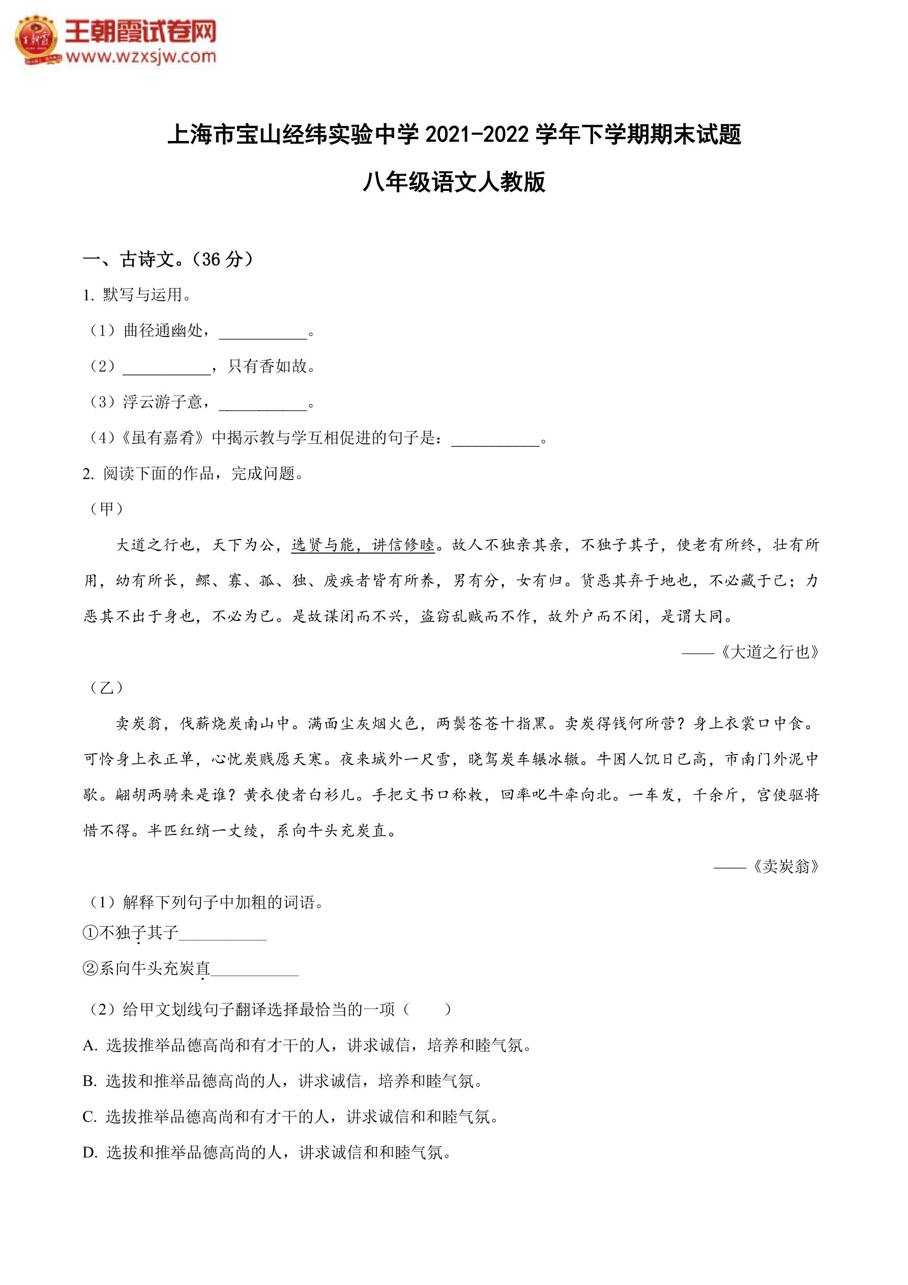 上海市宝山经纬实验中学2021-2022学年下学期期末八年级语文(人教版)