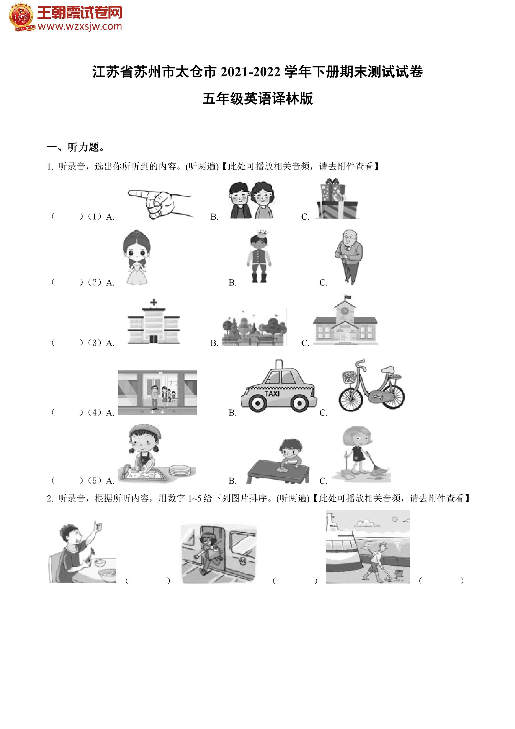 江苏省苏州市太仓市2021-2022学年下册期末测试试卷五年级英语(译林版)【无听力音频】