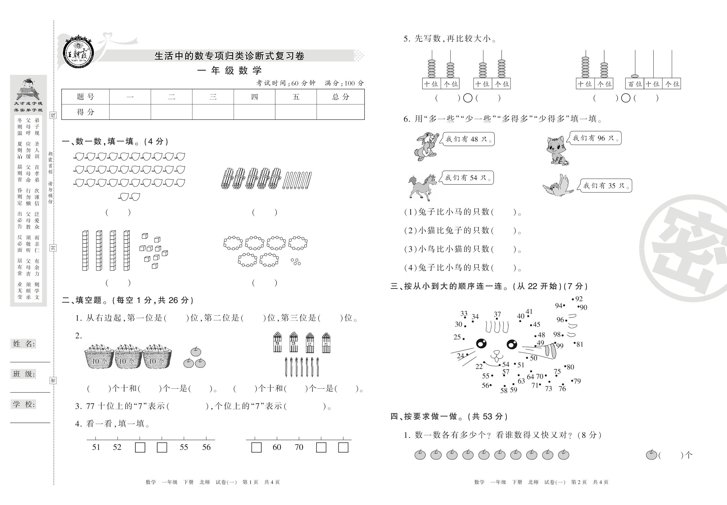 王朝霞期末专项卷一年级下册数学(北师版)_R210802223239【1】