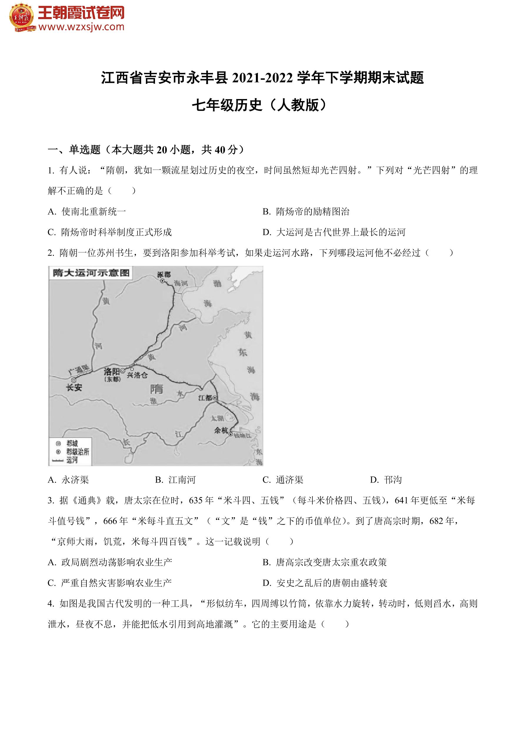 江西省吉安市永丰县2021-2022学年下学期期末试题七年级历史(人教版)