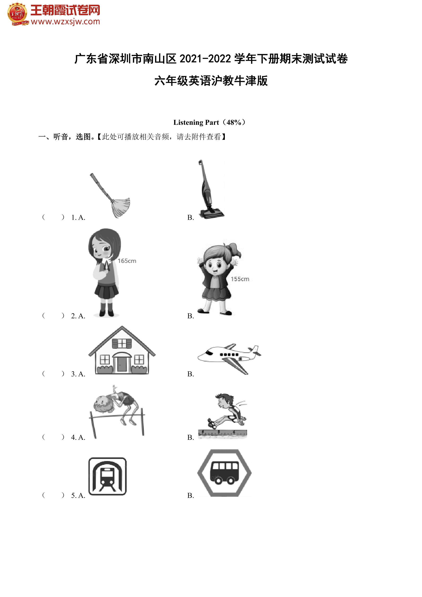 广东省深圳市南山区2021-2022学年下册期末测试试卷六年级英语(沪教牛津版)【无听力音频】
