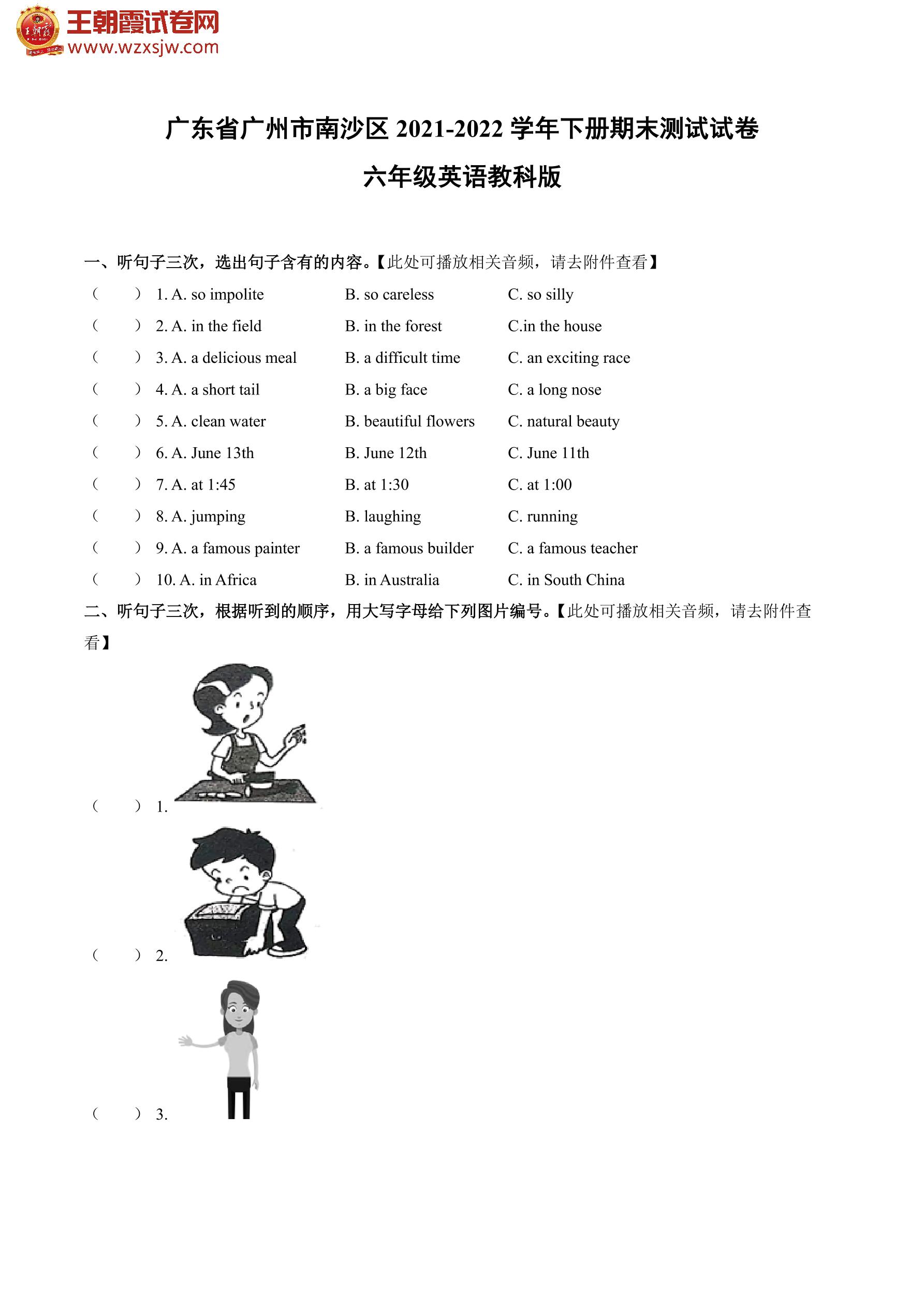 广东省广州市南沙区2021-2022学年下册期末测试试卷六年级英语(教科版)【无听力音频】