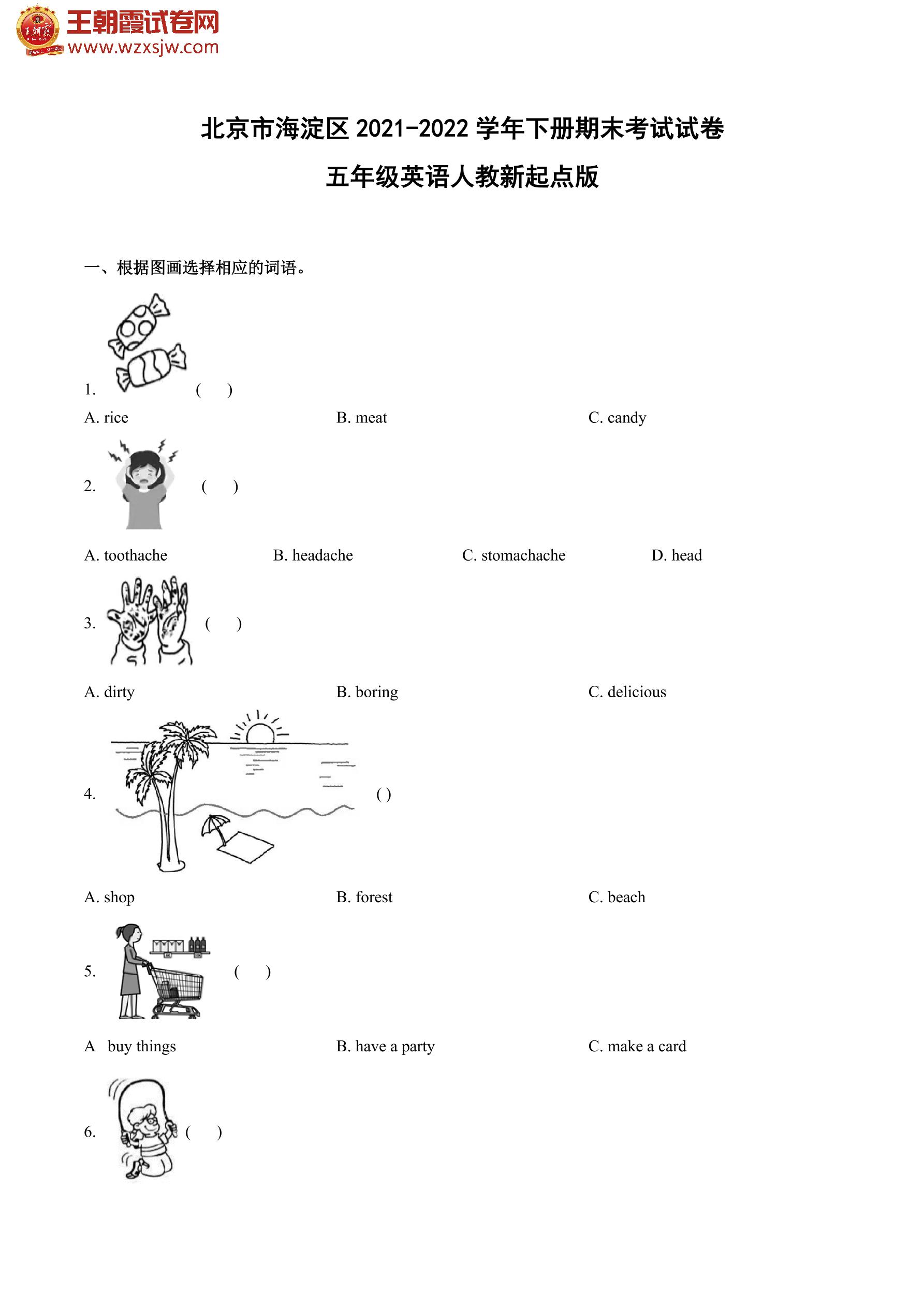 北京市海淀区2021-2022学年下册期末考试试卷五年级英语(人教新起点版)【无听力音频】