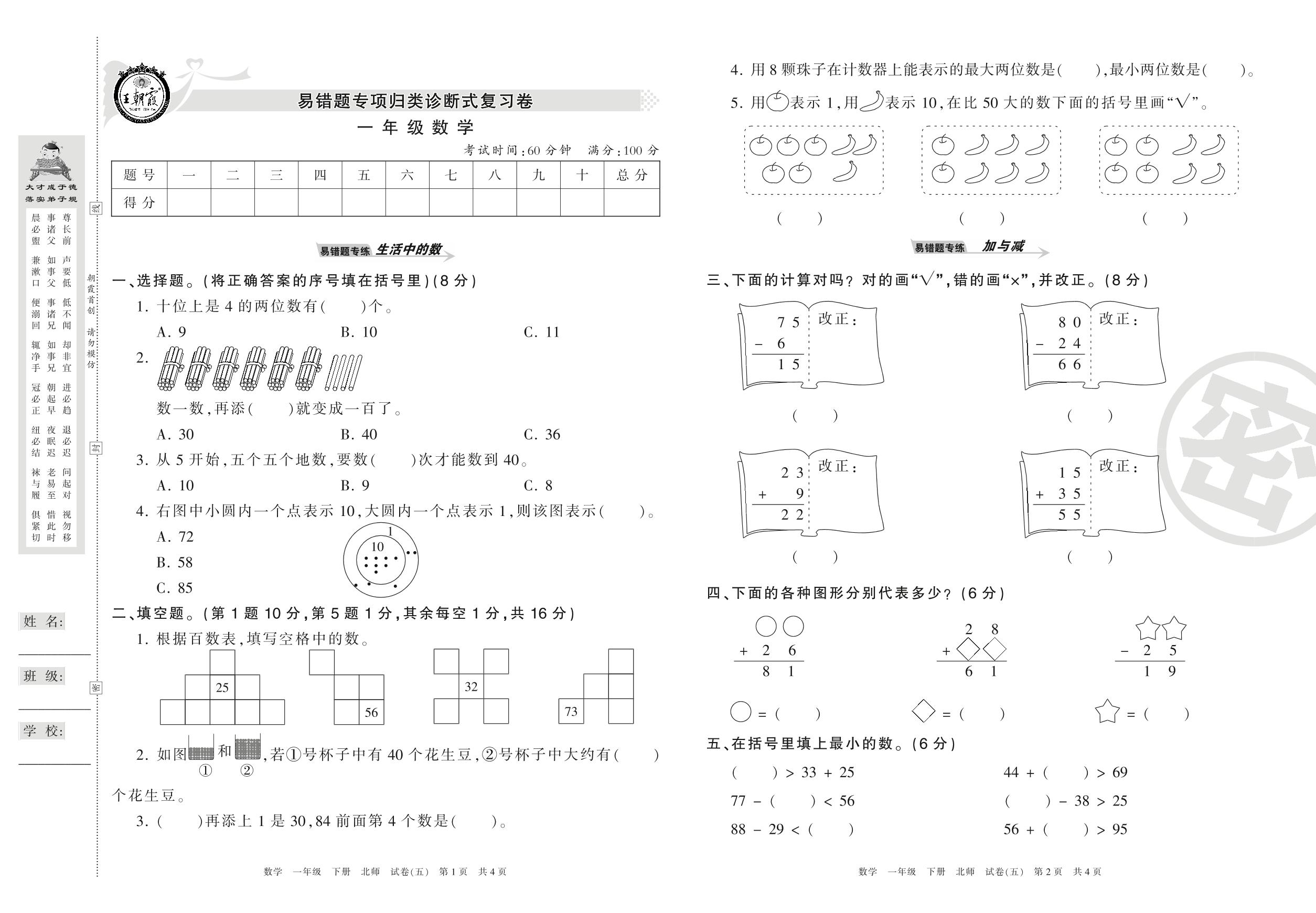 王朝霞期末专项卷一年级下册数学(北师版)【5】
