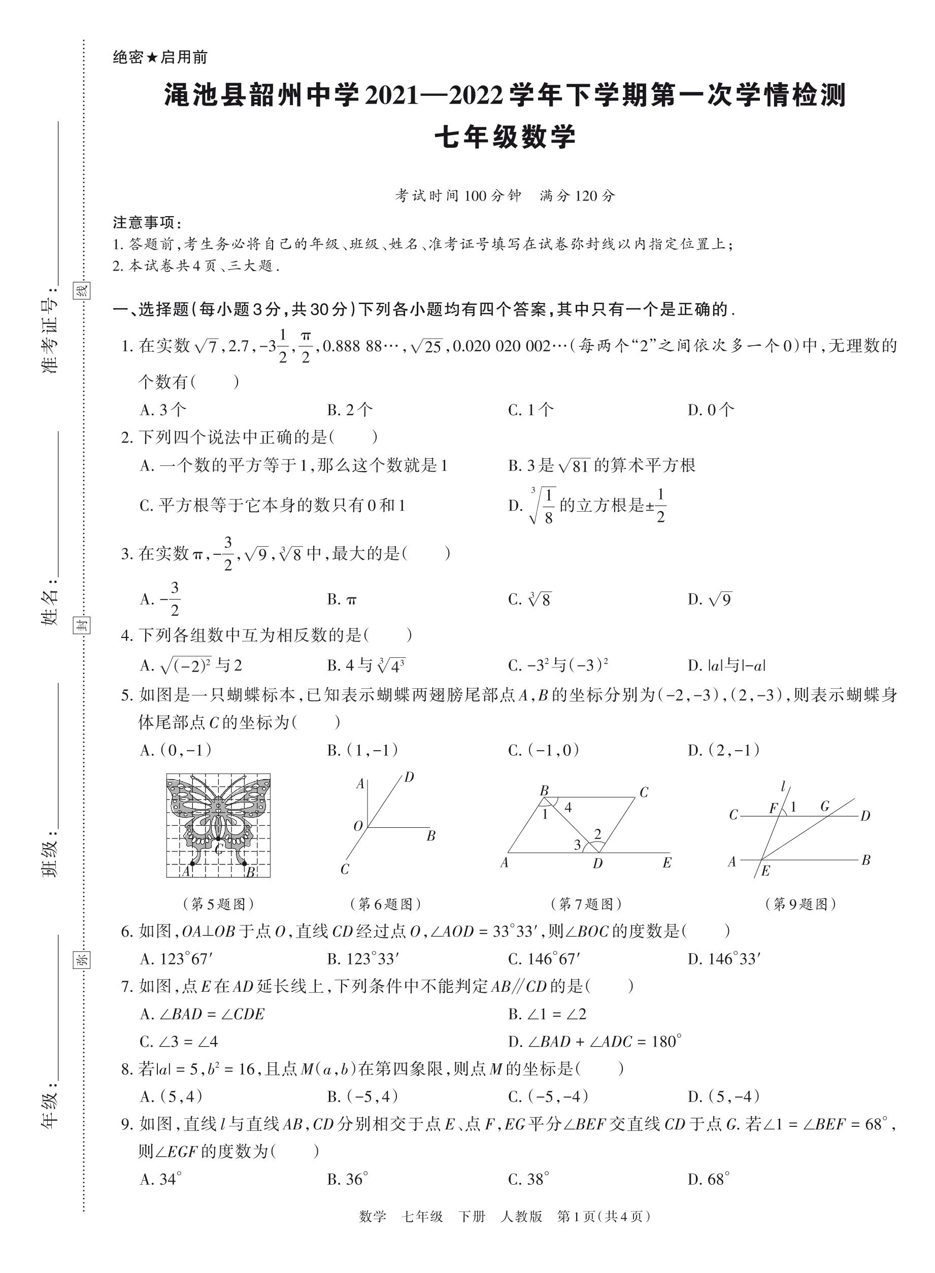 河南省三门峡市渑池县某中学2021-2022学年下学期第一次月考试卷七年级数学(人教版)