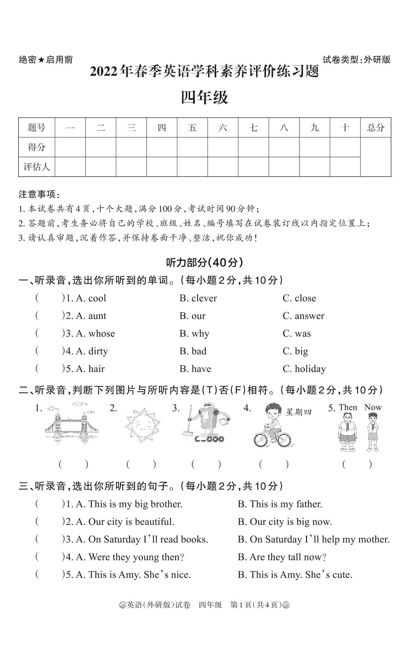 河南省洛阳市栾川县2022年春季学科素养评价期中练习题四年级英语(外研版)