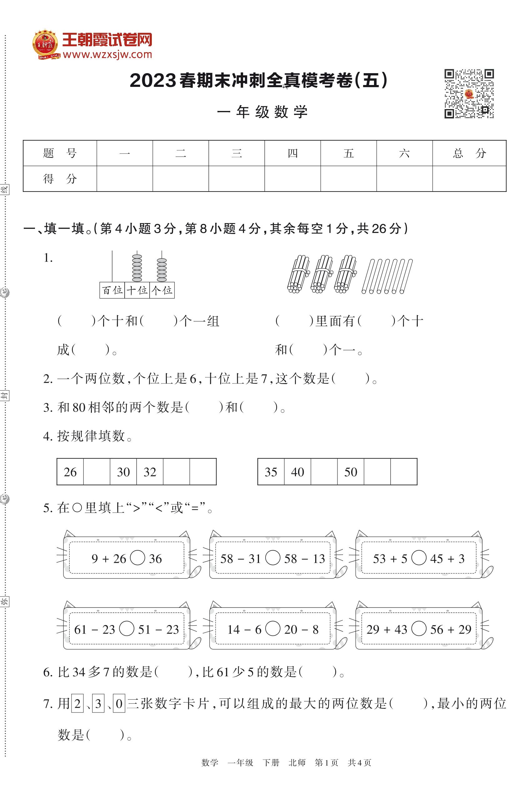 2023春期末冲刺全真模考卷(五)一年级数学(北师版)